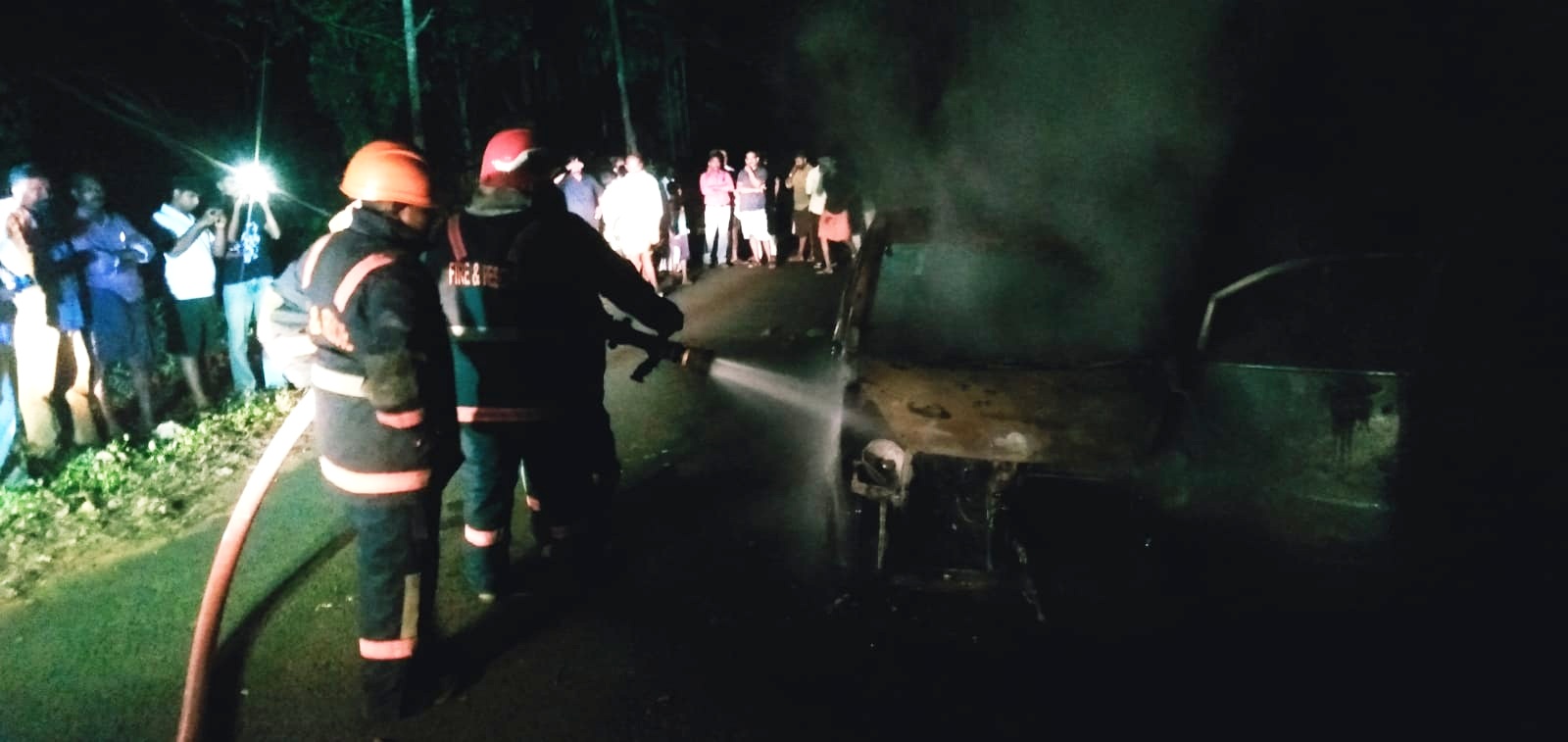വെള്ളാട് കാവുംകുടിയിലെ മുതുപുന്നക്കല് ജിന്റോ ജോസഫിന്റെ കെ.എല്-59 ബി-5525 മാരുതി എസ്റ്റിലോ കാറാണ് പൂര്ണമായി കത്തിനശിച്ചത്.