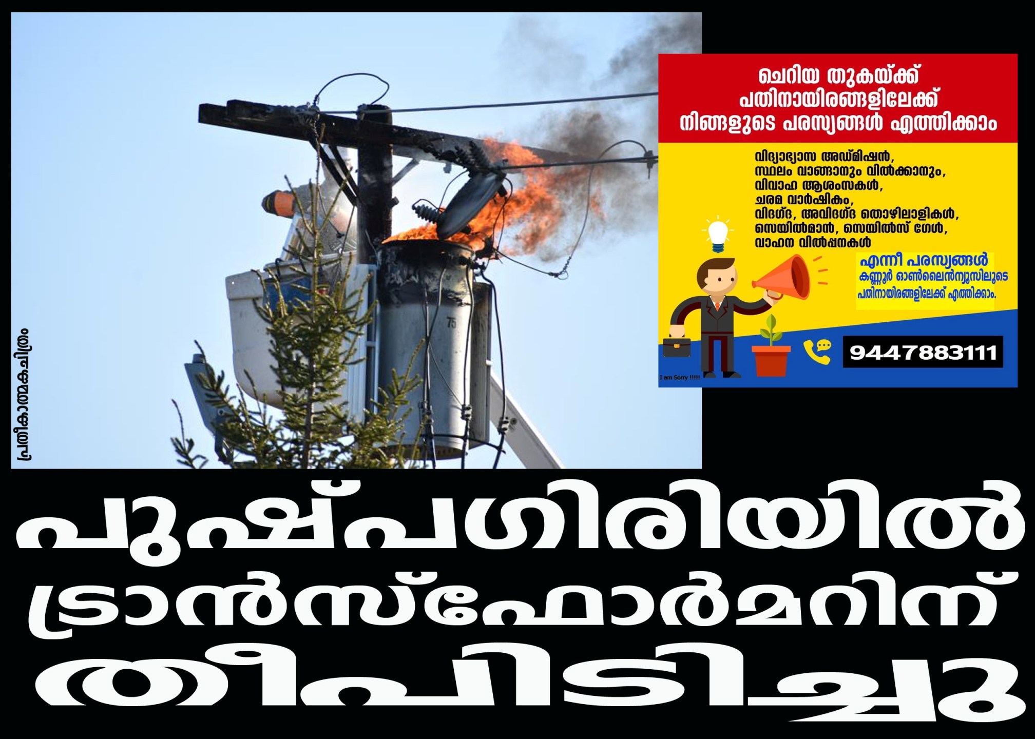 പുഷ്പഗിരിയില്‍ ട്രാന്‍സ്‌ഫോര്‍മറിന് തീപിടിച്ചു.