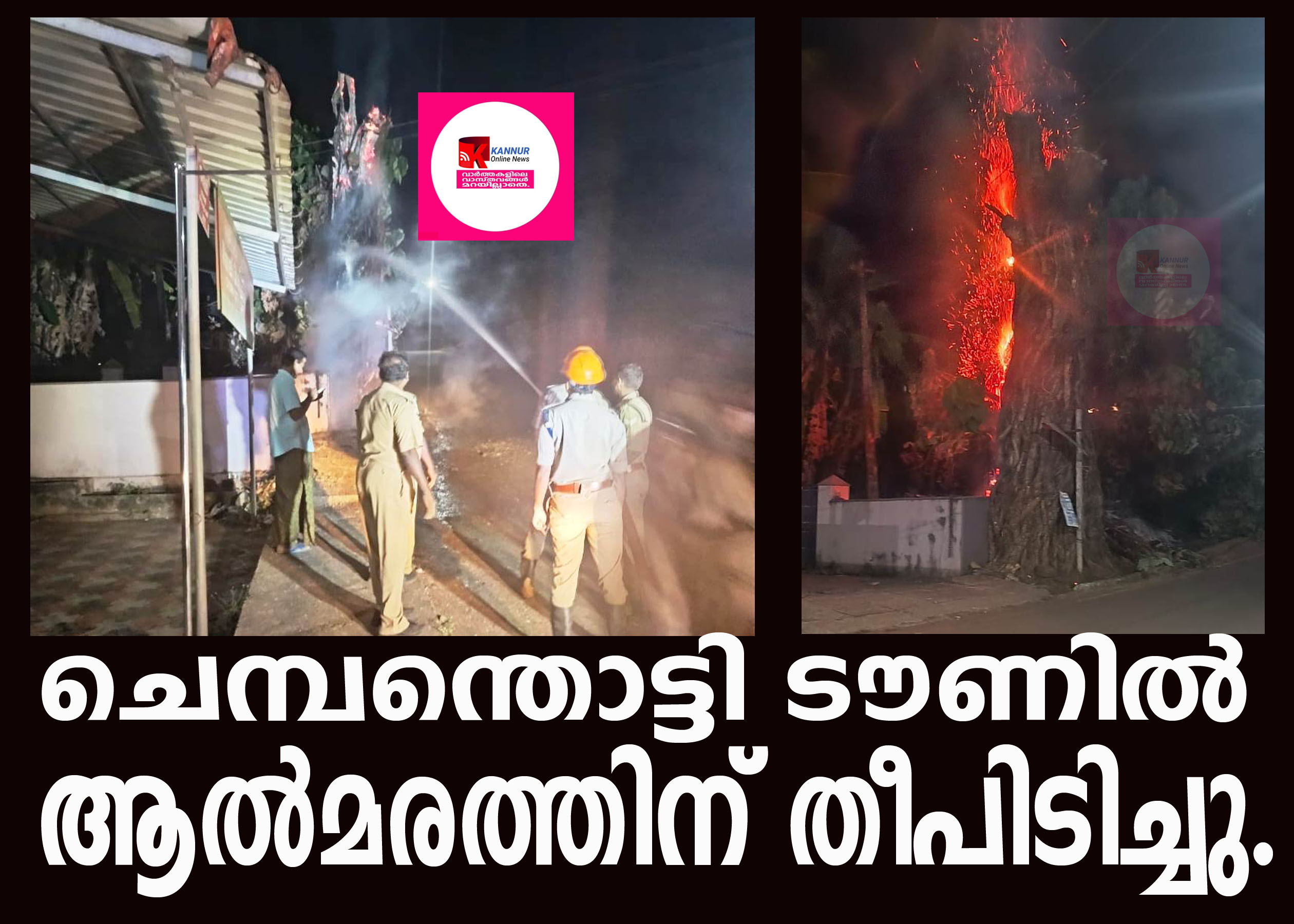 തളിപ്പറമ്പ്; ചെമ്പന്തൊട്ടി ടൗണില്‍ ആല്‍മരത്തിന് തീപിടിച്ചു.