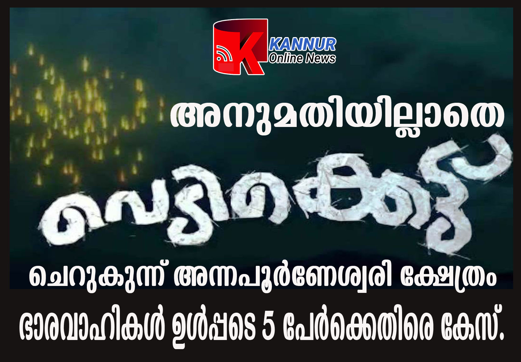 വെടിക്കെട്ട്: ചെറുകുന്ന് അന്നപൂര്ണേശ്വരി ക്ഷേത്രം ഭാരവാഹികള് ഉള്പ്പടെ 5 പേര്ക്കെതിരെ കേസ്.