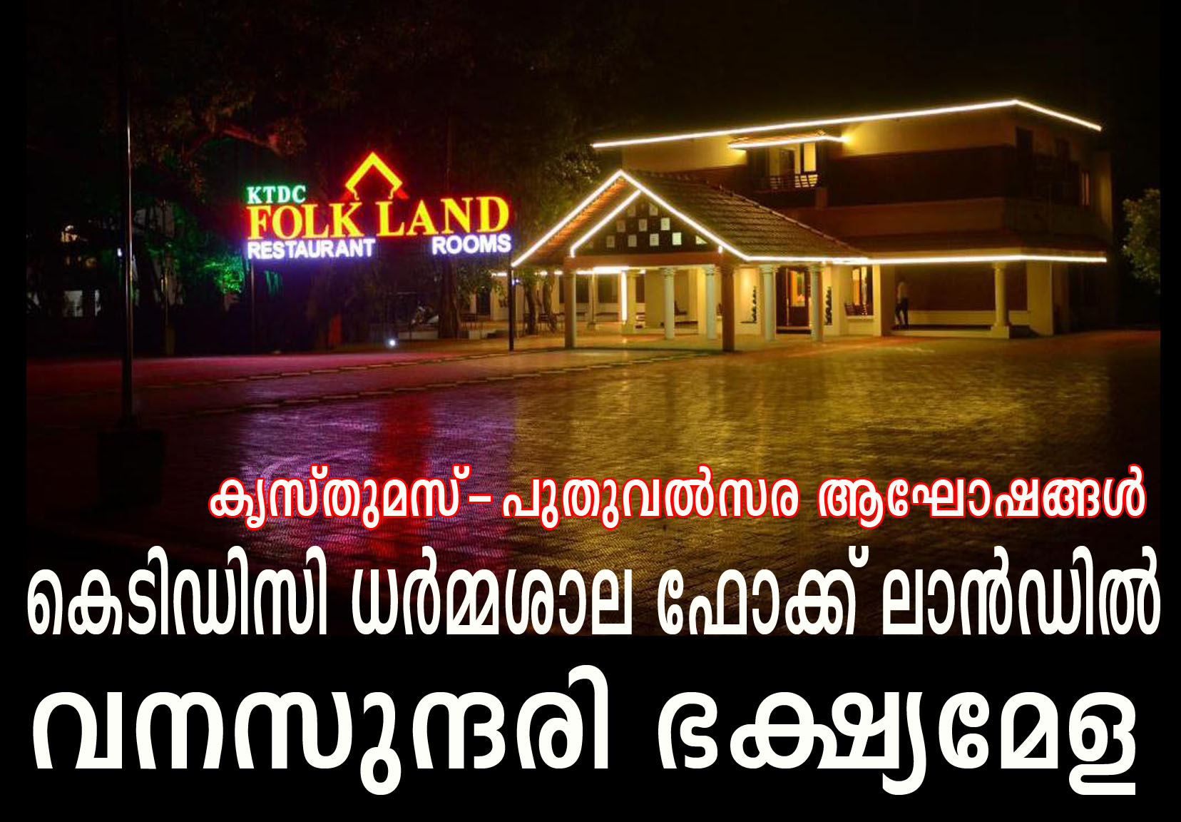 വനസുന്ദരി ഭക്ഷ്യമേള—കൃസ്തുമസ്-പുതുവല്സര ആഘോഷങ്ങള്ക്ക് കെ.ടി.ഡി.സി ധര്മ്മശാല ഫോക്ലാന്റ് ഒരുങ്ങി