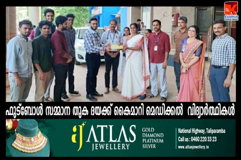 ഫുട്ബോള് സമ്മാന തുക ദയക്ക് കൈമാറി മെഡിക്കല് വിദ്യാര്ത്ഥികള്