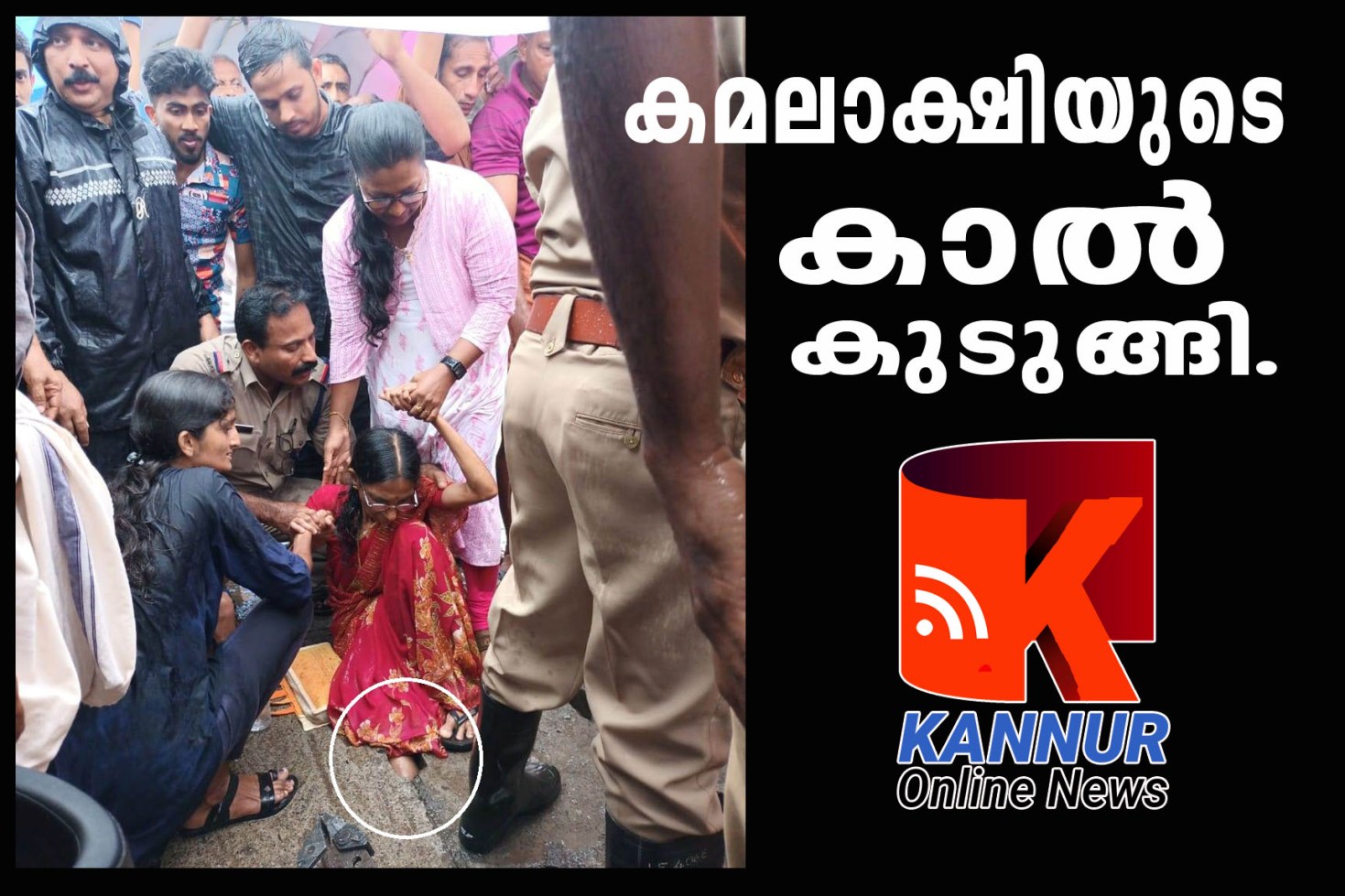 പയ്യന്നൂരില് നിന്നെത്തിയ അഗ്നിശമനസേനയാണ് സ്ളാബിനിടയില് നിന്നും പാദം പുറത്തെടുത്ത് ഇവരെ രക്ഷിച്ചത്.
