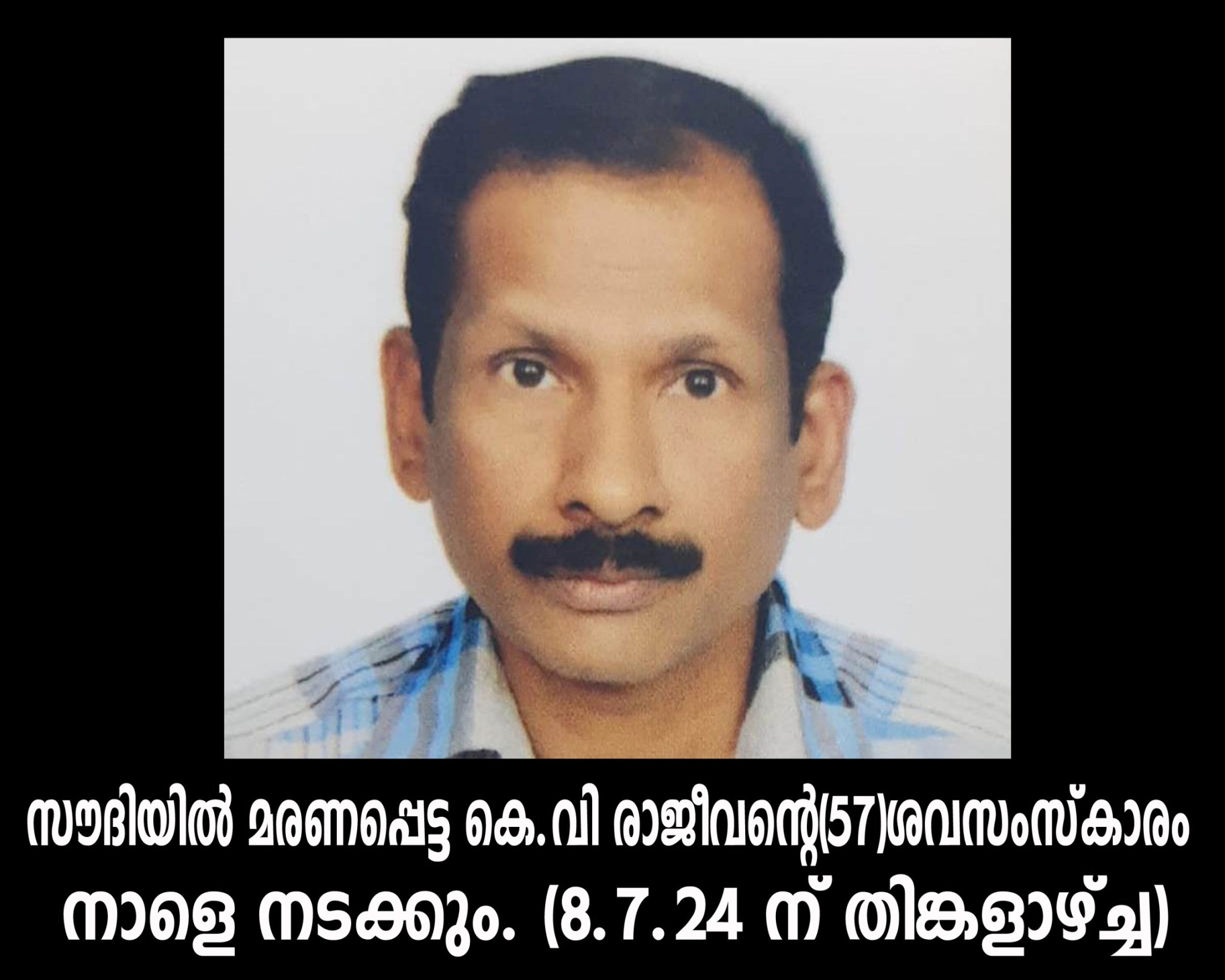 ധര്‍മ്മശാല: സൗദിയില്‍ മരണപ്പെട്ട കെ.വി രാജീവന്റെ(57)ശവസംസ്‌കാരം നാളെ നടക്കും. (8.7.24 ന് തിങ്കളാഴ്ച്ച).