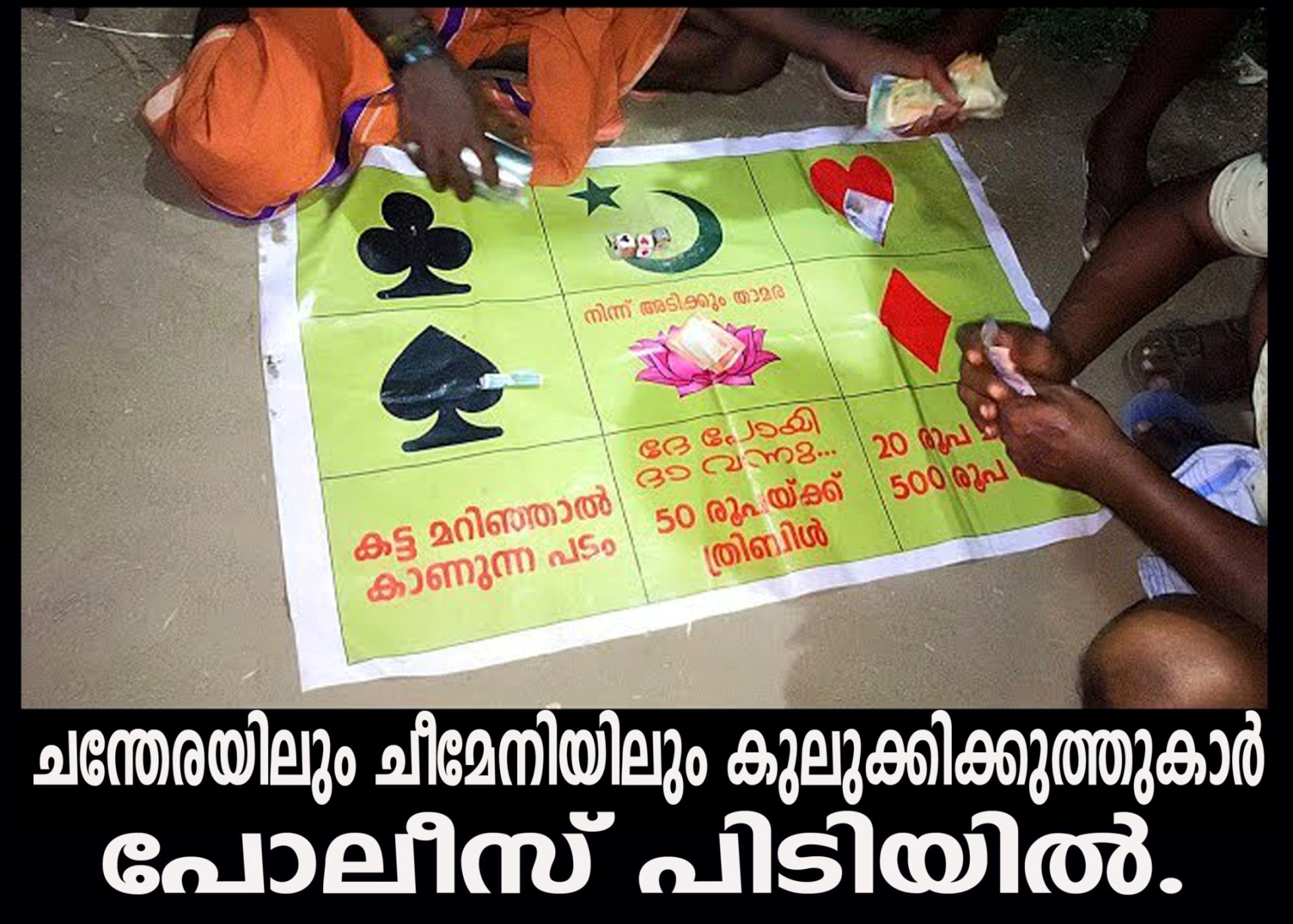 ചീമേനി: ക്ഷേത്രത്തിന് സമീപം കുലുക്കിക്കുത്ത് കളിയിലേര്‍പ്പെട്ട നാലുപേര്‍ ചീമേനി പോലീസിന്റെ പിടിയിലായി.