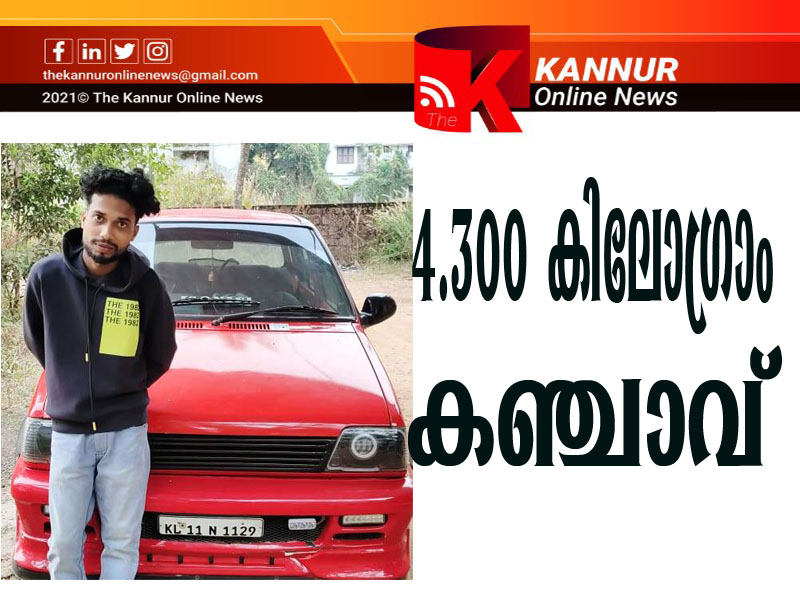എക്‌സൈസ് കമ്മിഷണര്‍ സ്‌ക്വാഡ് അംഗം പി.പി.രജിരാഗ് നല്‍കിയ വിവരത്തിന്റെ അടിസ്ഥാനത്തിലാണ് എരിപുരം സര്‍ക്കിളില്‍ വെച്ച് കെ.എല്‍ 11 എന്‍ 1129 ചുവന്ന മാരുതി ആള്‍ട്ടോ 800 കാറില്‍ കടത്തിയ 4.300 കിലോ കഞ്ചാവ് സഹിതം ഇയാളെ പിടികൂടിയത്.