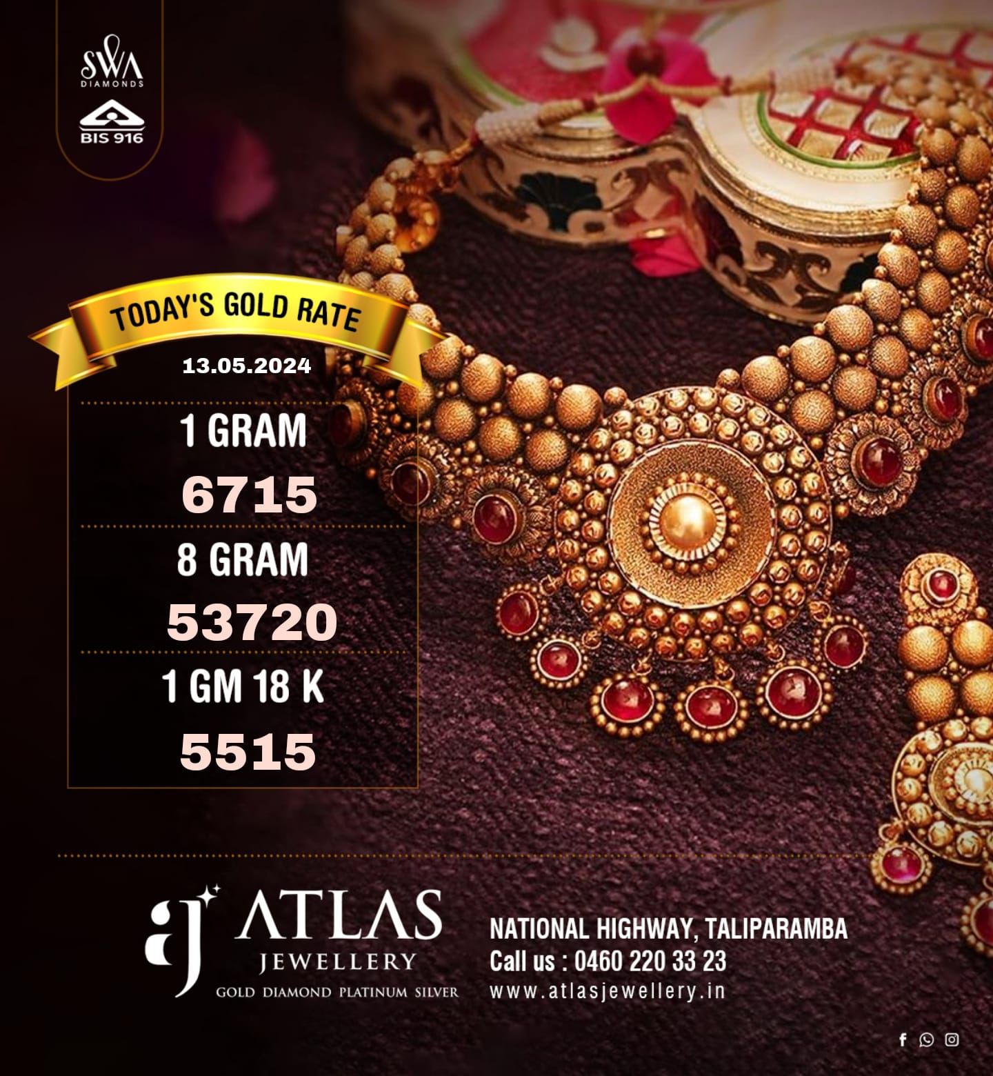 ഒരു ഗ്രാം സ്വര്ണത്തിന്റെ ഇന്നത്തെ വില 6715 രൂപയാണ്. ഗ്രാം വിലയില് 10 രൂപയുടെ ഇടിവാണ് ഇന്നുണ്ടായത്.