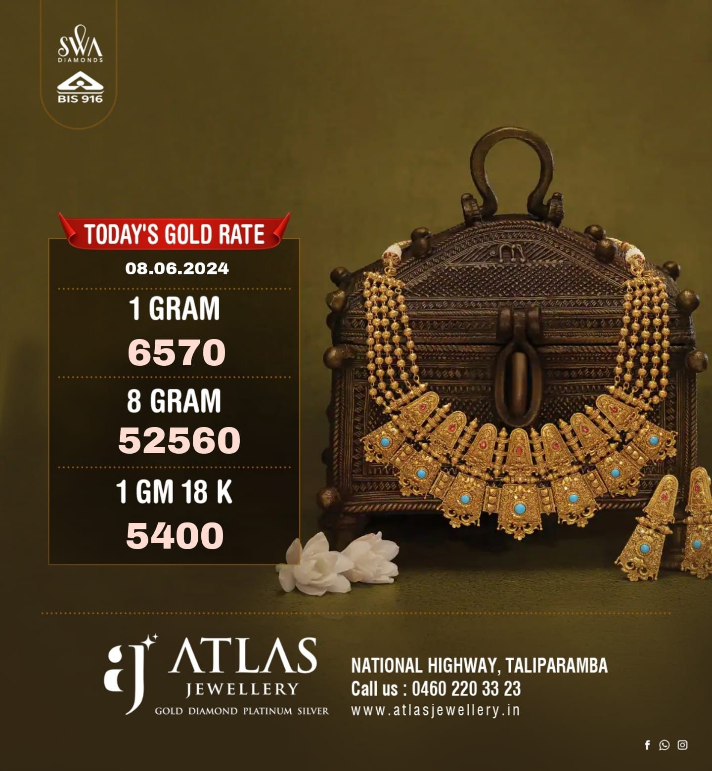 \ഒരു പവന് സ്വര്ണത്തിന്റെ വില 52,560 രൂപ. ഗ്രാമിന് 190 രൂപ താഴ്ന്ന് 6570 ആയി.