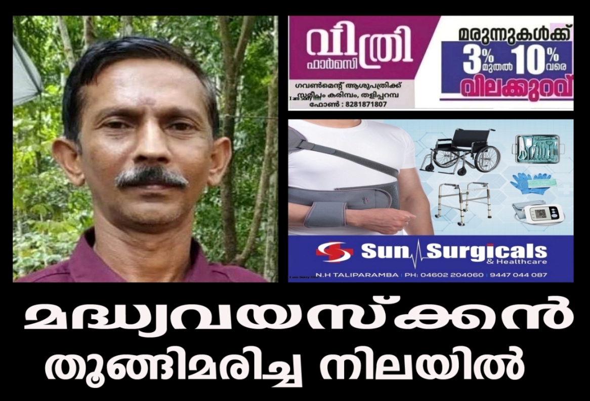 ഉദയഗിരി ചീക്കാട്ടെ കോന്തനാനിയില് വീട്ടില് കൃഷ്ണന്കുട്ടിയുടെ മകന് കെ.കെ.ബിജുവിനെയാണ്(49)വീട്ടിലെ റൂഫിങ്ങിനായി ഇട്ട കമ്പിയില് പ്ലാസ്റ്റിക്ക് കയറില് തൂങ്ങിയ നിലയില് കണ്ടത്.