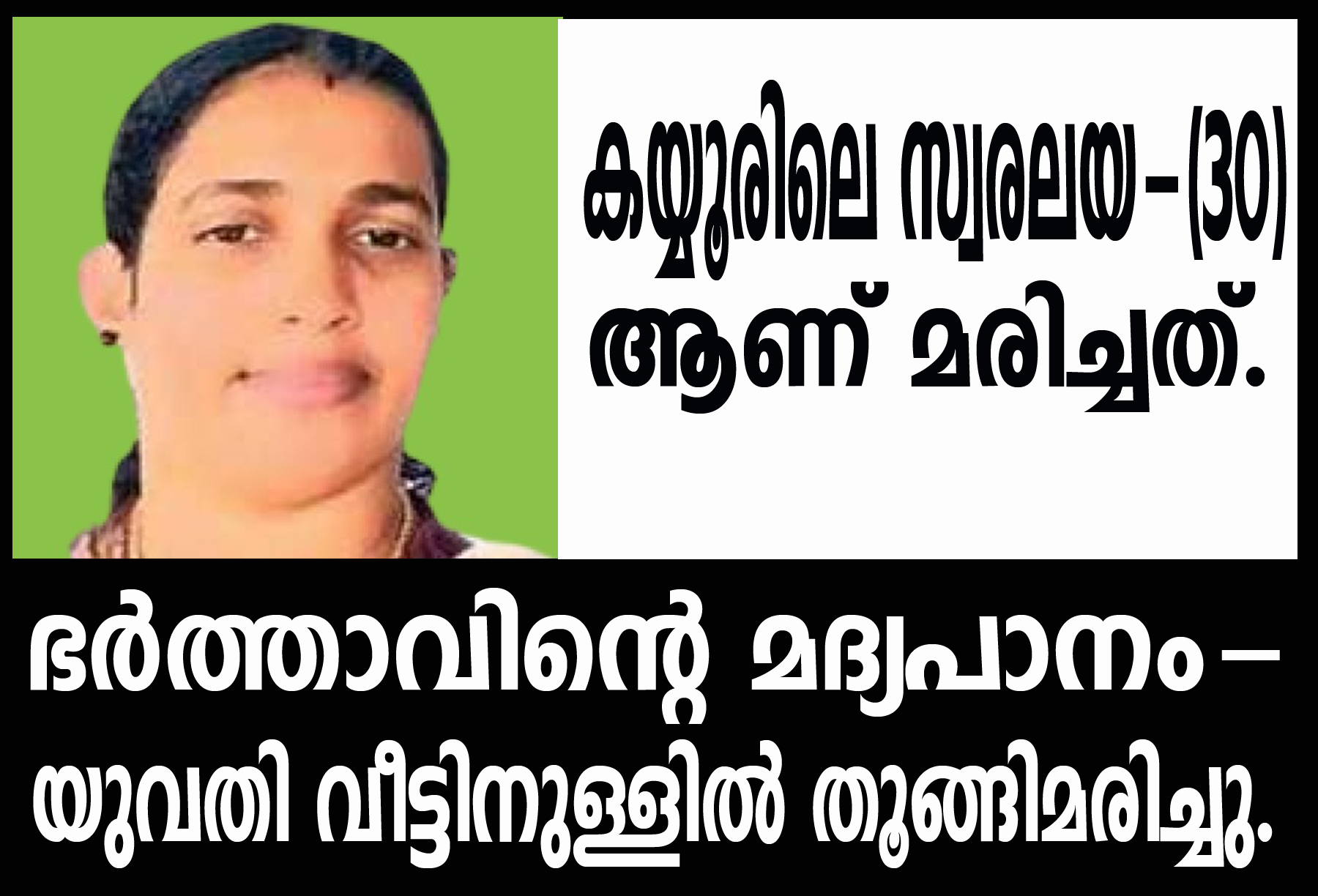കയ്യൂര് ചെറിയാക്കരയിലെ സ്വരലയയെയാണ് (30) വെള്ളിയാഴ്ച വൈകുന്നേരം ആറോടെ വ തൂങ്ങിമരിച്ചനിലയില് കണ്ടെത്തിയത്.