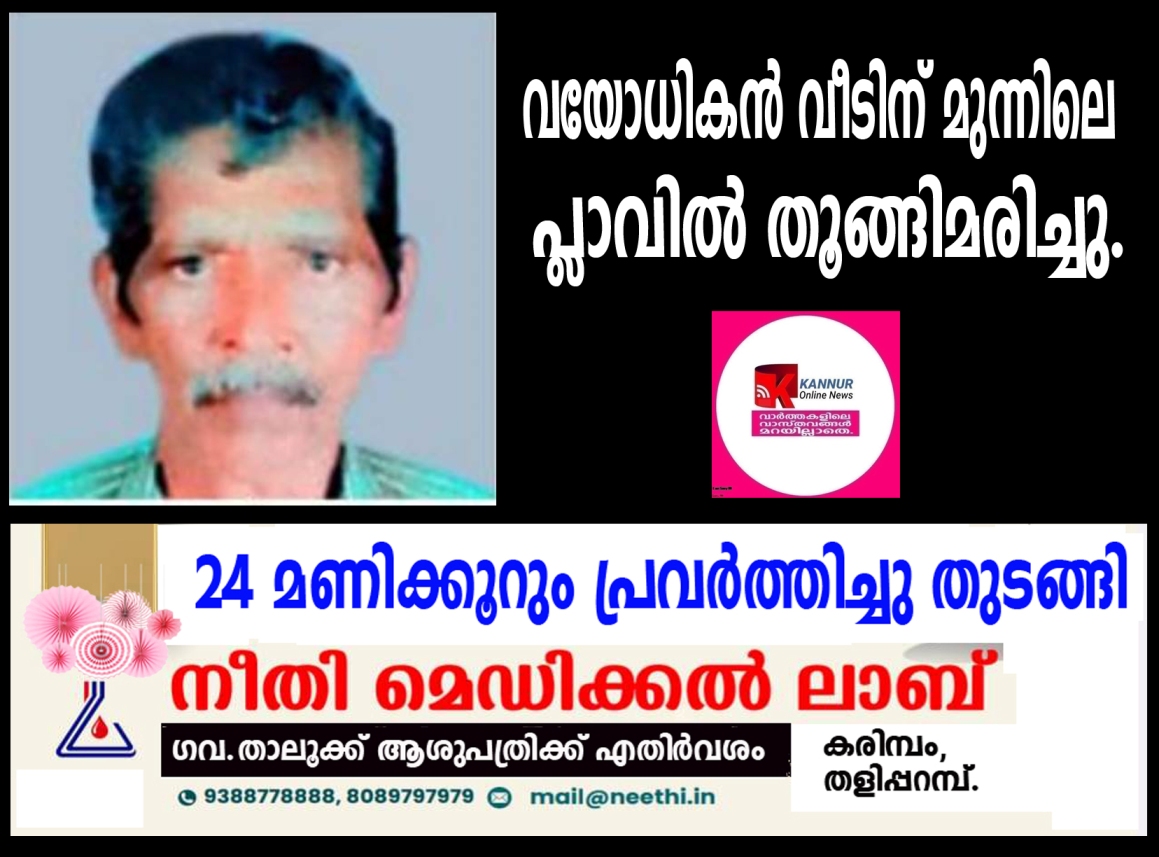 പാണപ്പുഴ: വയോധികന് വീടിന് മുന്നിലെ പ്ലാവില് തൂങ്ങിമരിച്ചു.