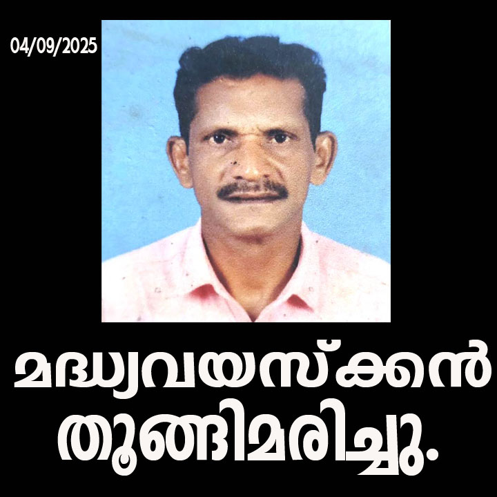 ബക്കളം: മദ്ധ്യവയസ്ക്കനെ വീടിന്റെ വര്ക്ക് ഏരിയയിലെ ഹുക്കില് ലുങ്കിയില് തൂങ്ങിമരിച്ച നിലയില് കണ്ടെത്തി.
