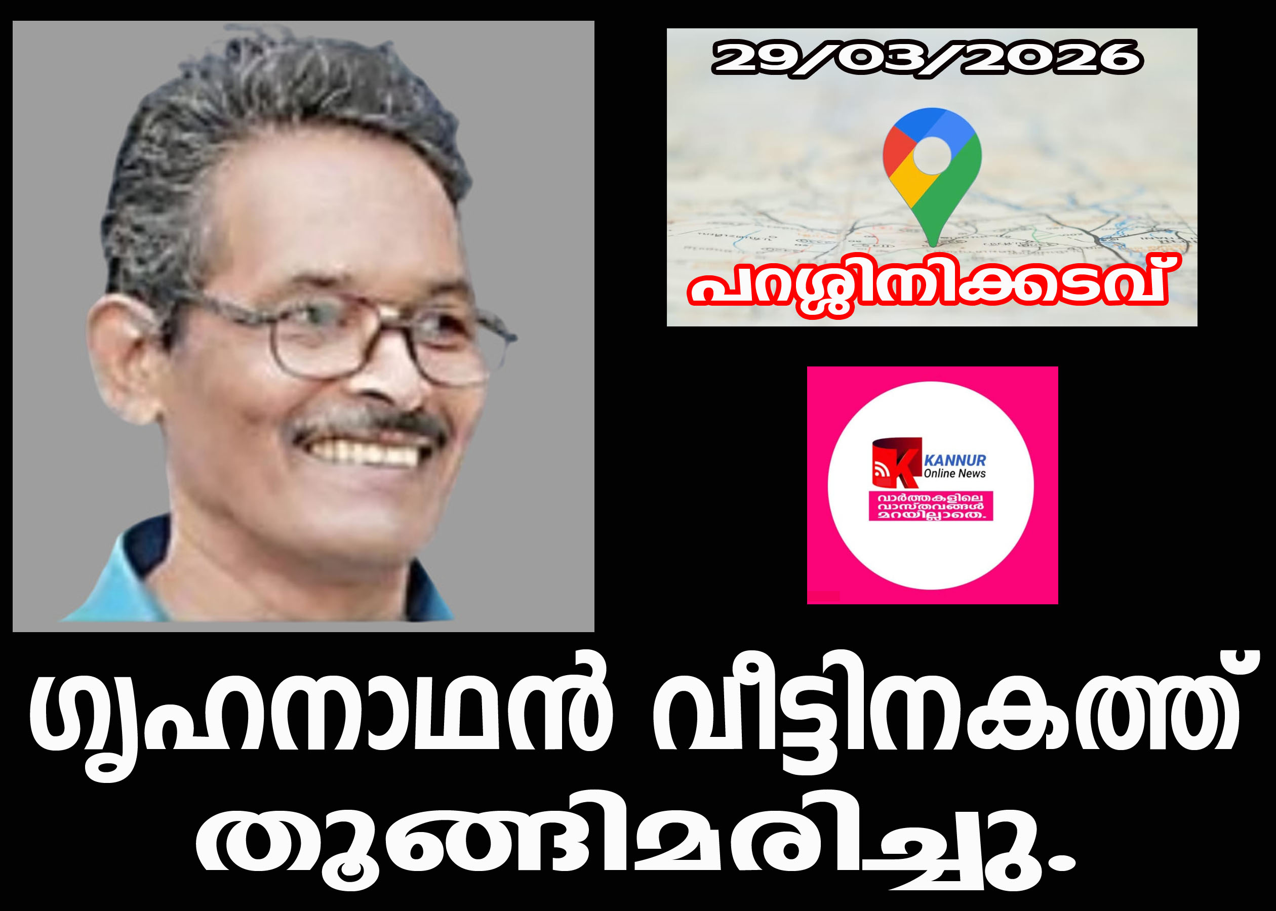 പറശ്ശിനിക്കടവ്: ഗൃഹനാഥന് വീട്ടിനകത്ത് സ്റ്റെയര്കേസിന്റെ കൈവരിയില് തൂങ്ങിമരിച്ചു.