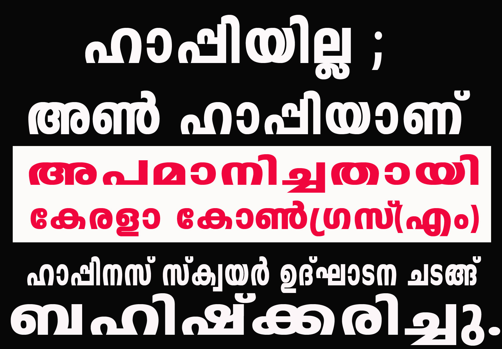 ഹാപ്പിയില്ല; അണ് ഹാപ്പിയാണ് ഹാപ്പിനസ് സ്ക്വയര് ഉദ്ഘാടന ചടങ്ങ് ബഹിഷ്ക്കരിച്ചു.