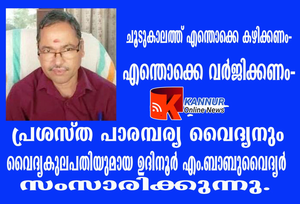 രണ്ടുപേര്‍ കൂടിച്ചേരുന്നിടത്തെല്ലാം ചര്‍ച്ച ഇന്നത്തെ ചൂടിനെക്കുറിച്ചാണ്, ചൂടുകാലത്ത് എന്തൊക്കെ കഴിക്കണം, കഴിക്കാതിരിക്കേണ്ടത് ഏതൊക്കെയാണ് എന്ന് ഓര്‍മ്മിപ്പിക്കുകയാണ് പ്രശസ്ത പാരമ്പര്യ വൈദ്യനും വൈദ്യകുലപതിയുമായ ഉദിനൂര്‍ എം.ബാബുവൈദ്യര്‍-