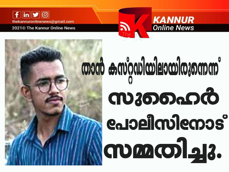 സുഹൈറിനെ തളിപ്പറമ്പ് ഡി.വൈ.എസ്.പി എം.പി.വിനോദ്, ഇന്സ്പെക്ടര് എ.വി.ദിനേശന് എന്നിവരും രഹസ്യാന്വേഷണ വിഭാഗത്തിലെ ഉന്നതരും ചോദ്യം ചെയ്തുവരികയാണ്.