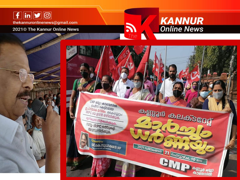 സി.എം.പി ജില്ലാ കൗണ്‍സില്‍ ഓഫീസ് കെട്ടിടം അനധികൃതമായി കൈയ്യേറിയ ഐ.ആര്‍.പി.സി.യെ ഉടന്‍ ഒഴിപ്പിക്കുക, ഭൂനികുതി സ്വീകരിക്കുക എന്നീ ആവശ്യങ്ങള്‍ ഉന്നയിച്ച് സി.എം.പി പ്രവര്‍ത്തകര്‍ നടത്തിയ കലക്ടറേറ്റ് മാര്‍ച്ചും ധര്‍ണയും ഉദ്ഘാടനം ചെയ്യുകയായിരുന്നു അദ്ദേഹം.