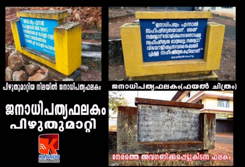 കേരളത്തിലെ അവശേഷിക്കുന്ന ഏക ജനാധിപത്യഫലകവും പിഴുതുമാറ്റി.