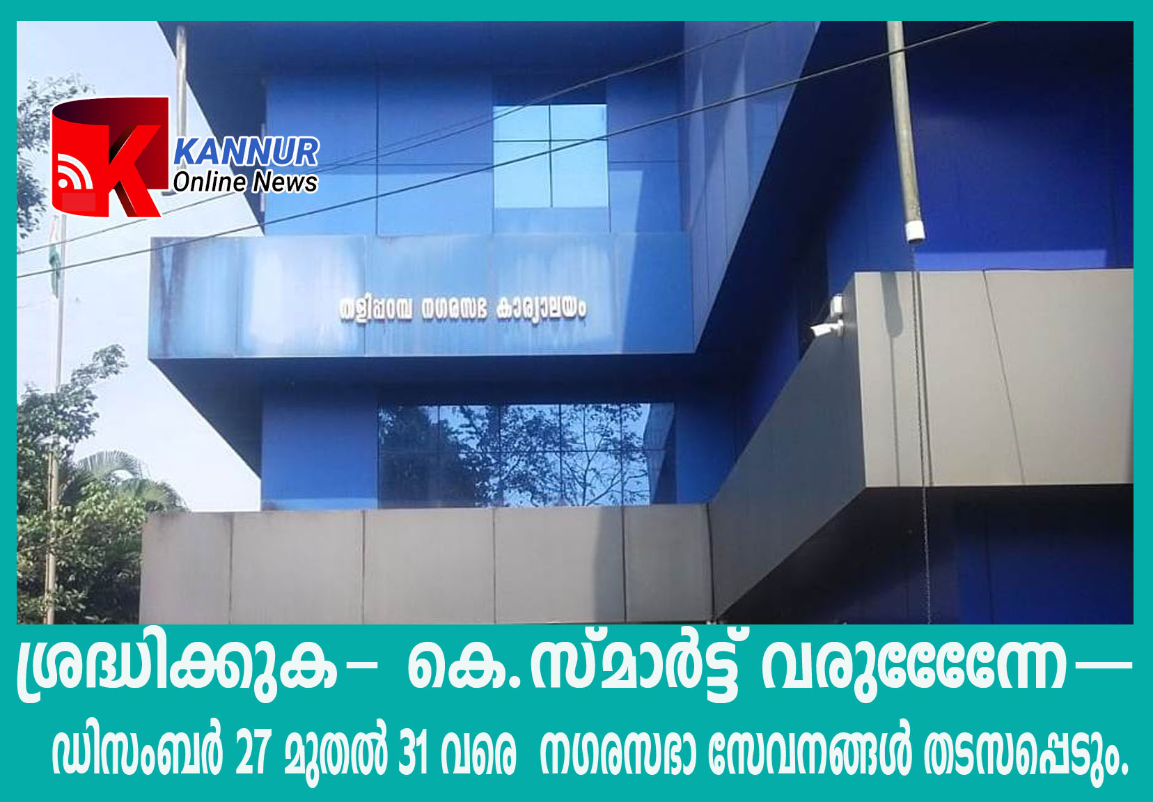 ശ്രദ്ധിക്കുക- കെ.സ്മാര്ട്ട് വരുേേേേന്ന–ഡിസംബര് 27 മുതല് 31 വരെ നഗരസഭാ സേവനങ്ങള് തടസപ്പെടും.