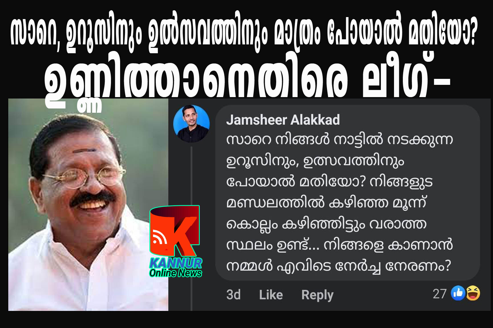 സാറെ നിങ്ങള് നാട്ടില് നടക്കുന്ന ഉറൂസിനും ഉല്സവത്തിനും പോയാല് മതിയോ? നിങ്ങളുടെ മണ്ഡലത്തില് കഴിഞ്ഞ മൂന്ന് കൊല്ലം കഴിഞ്ഞിട്ടും വരാത്ത സ്ഥലമുണ്ട്. നിങ്ങളെ കാണാന് നമ്മള് എവിടെ നേര്ച്ച നേരണം? എന്നാണ് കുറിപ്പ്.