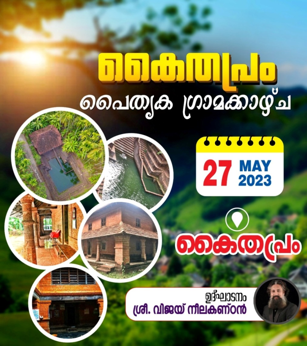 ഗ്രാമക്കാഴ്ച്ചകള് ആസ്വദിക്കാനായി കൈതപ്രം പൈതൃക ഗ്രാമകാഴ്ച്ച എന്ന പരിപാടിക്ക് മെയ് 27 ന് തുടക്കമാവും.