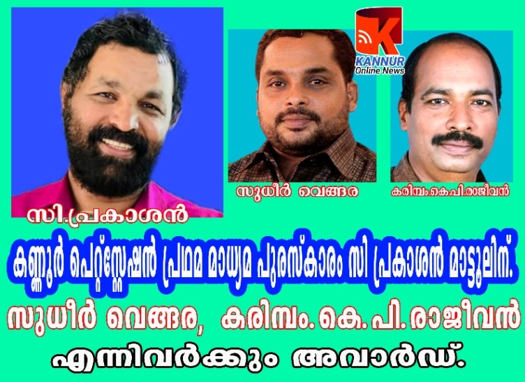 കണ്ണൂര്:അരുമ ജീവികളെ കുറിച്ചുള്ള ഫീച്ചറിന് കണ്ണൂര് പെറ്റ്സ്റ്റേഷന്റെ പ്രഥമ മാധ്യമ പുരസ്കാരം സി പ്രകാശന് ലഭിച്ചതായി പെറ്റ്സ്റ്റേഷന് എംഡി സാബിര് കണ്ണൂര് വാര്ത്താകുറിപ്പില് അറിയിച്ചു.