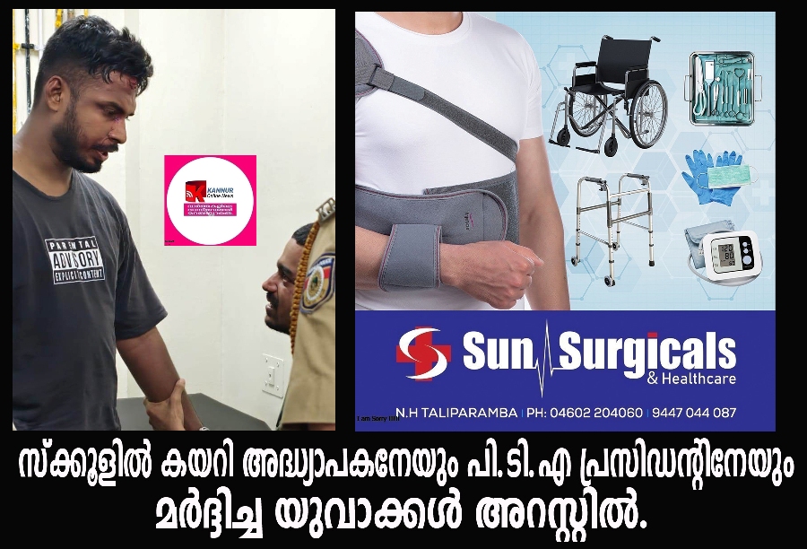 പരിയാരം: സ്ക്കൂളില് കയറി അധ്യാപകനേയും പി.ടി.എ പ്രസിഡന്റിനേയും ആക്രമിച്ച യുവാക്കള് അറസ്റ്റില്.