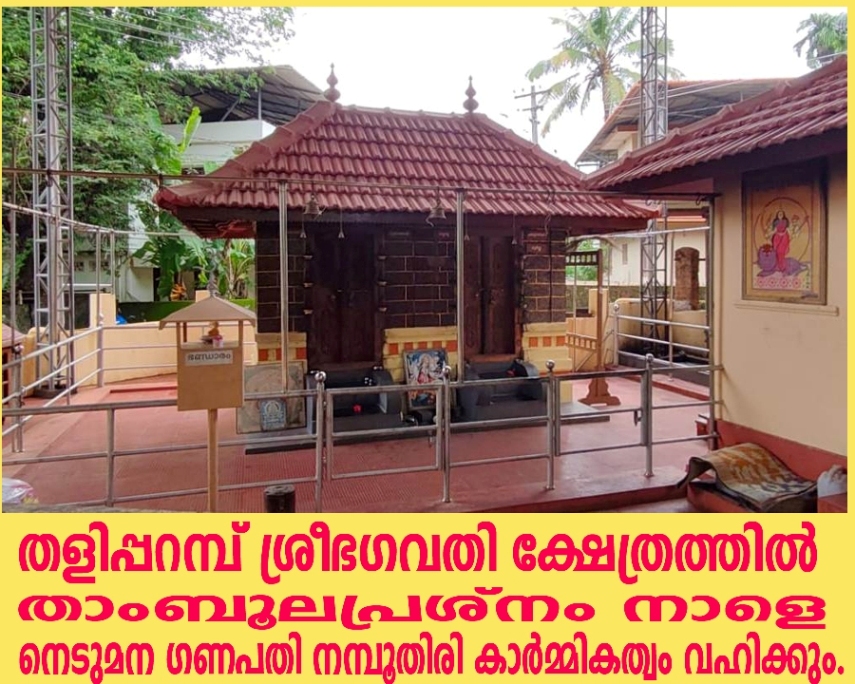 തളിപ്പറമ്പ്: ഉത്തരകേരളത്തിലെ പ്രമുഖ ദേവീക്ഷേത്രമായ തളിപ്പറമ്പ് ശ്രീഭഗവതി ക്ഷേത്രത്തില് താംബൂലപ്രശ്നം നാളെ.