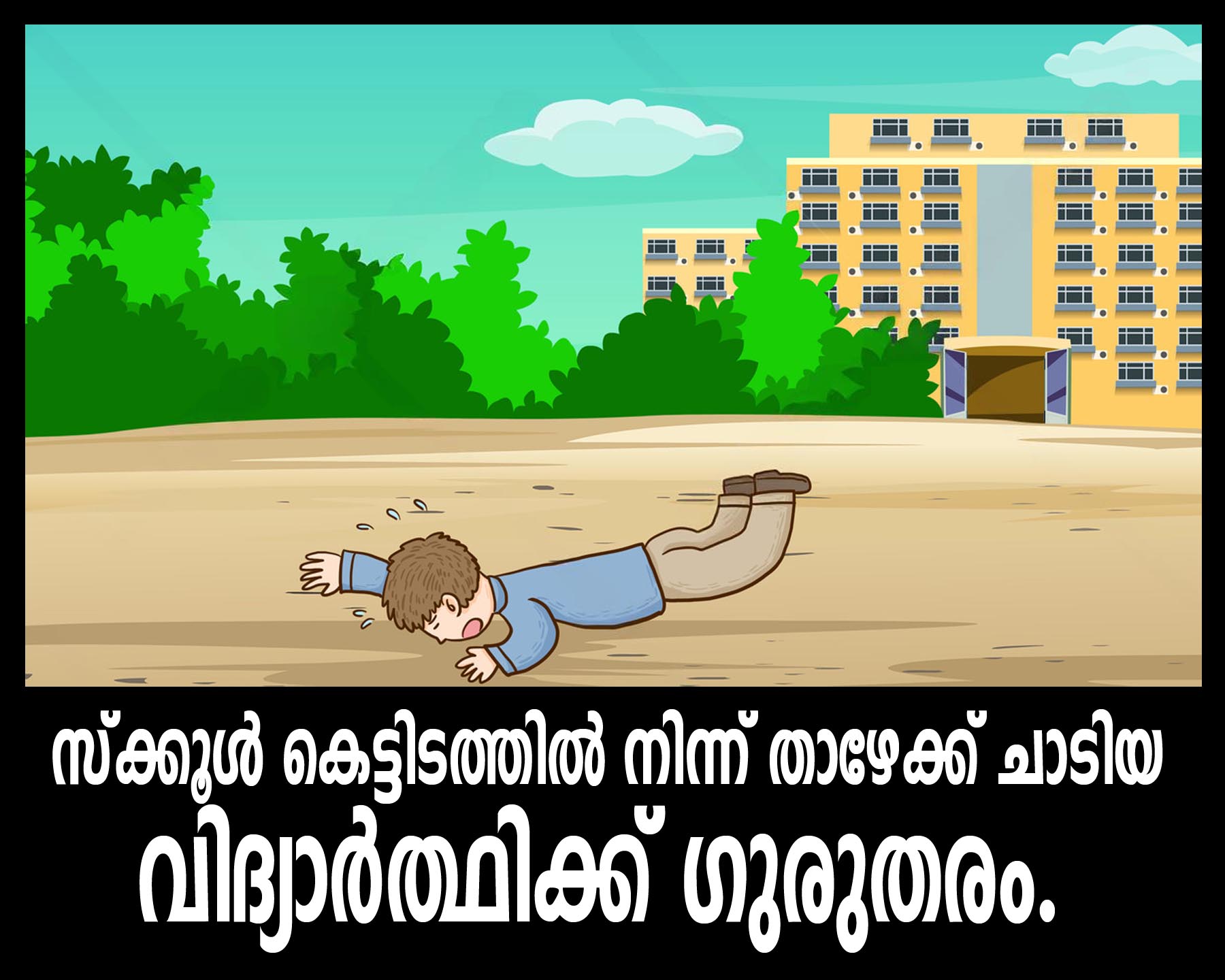 സ്‌ക്കൂള്‍ കെട്ടിടത്തില്‍ നിന്ന് താഴേക്ക് ചാടിയ വിദ്യാര്‍ത്ഥിക്ക് ഗുരുതരം.