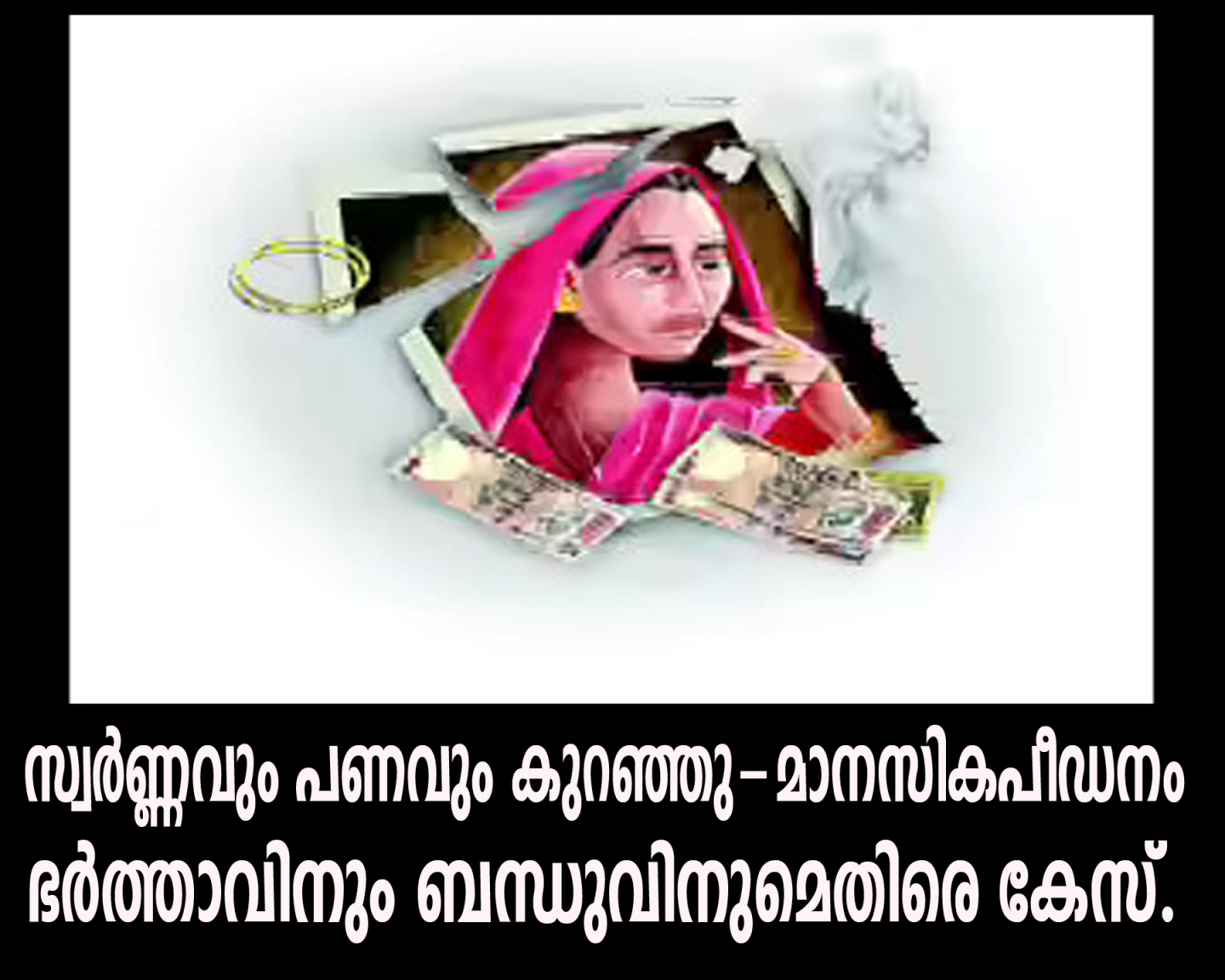 സ്വര്‍ണ്ണവും പണവും കുറഞ്ഞു-മാനസികപീഡനം ഭര്‍ത്താവിനും ബന്ധുവിനുമെതിരെ കേസ്.