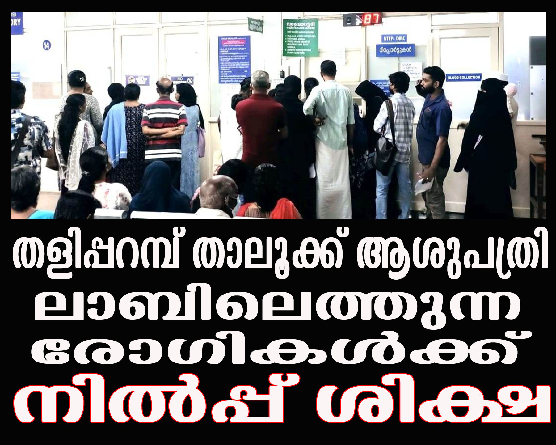 തളിപ്പറമ്പ്: തളിപ്പറമ്പ് താലൂക്ക് ഹെഡ്ക്വാർട്ടേഴ്സ് ആശുപത്രി ലാബിൽ പരിശോധനക്ക് എത്തുന്ന രോഗികൾക്ക് നിൽപ്പ് ശിക്ഷ.