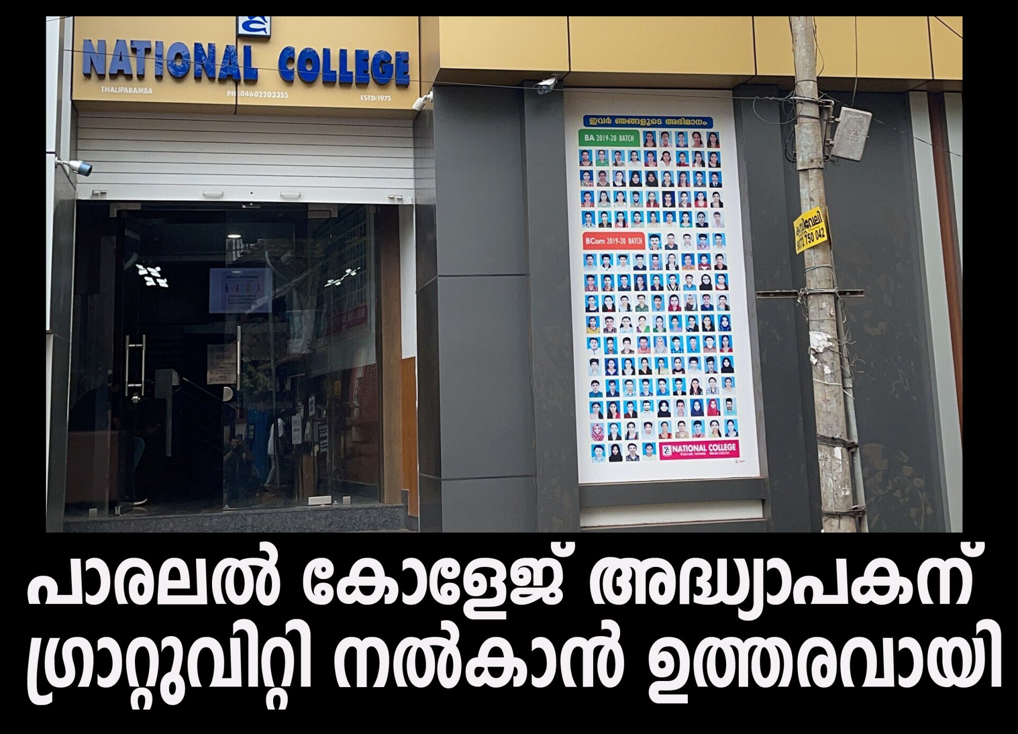 തളിപ്പറമ്പ്: പാരലല് കോളേജ് അദ്ധ്യാപകന് ഗ്രാറ്റുവിറ്റി നല്കാന് ഉത്തരവായി.