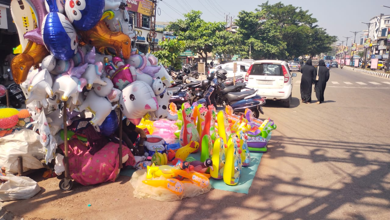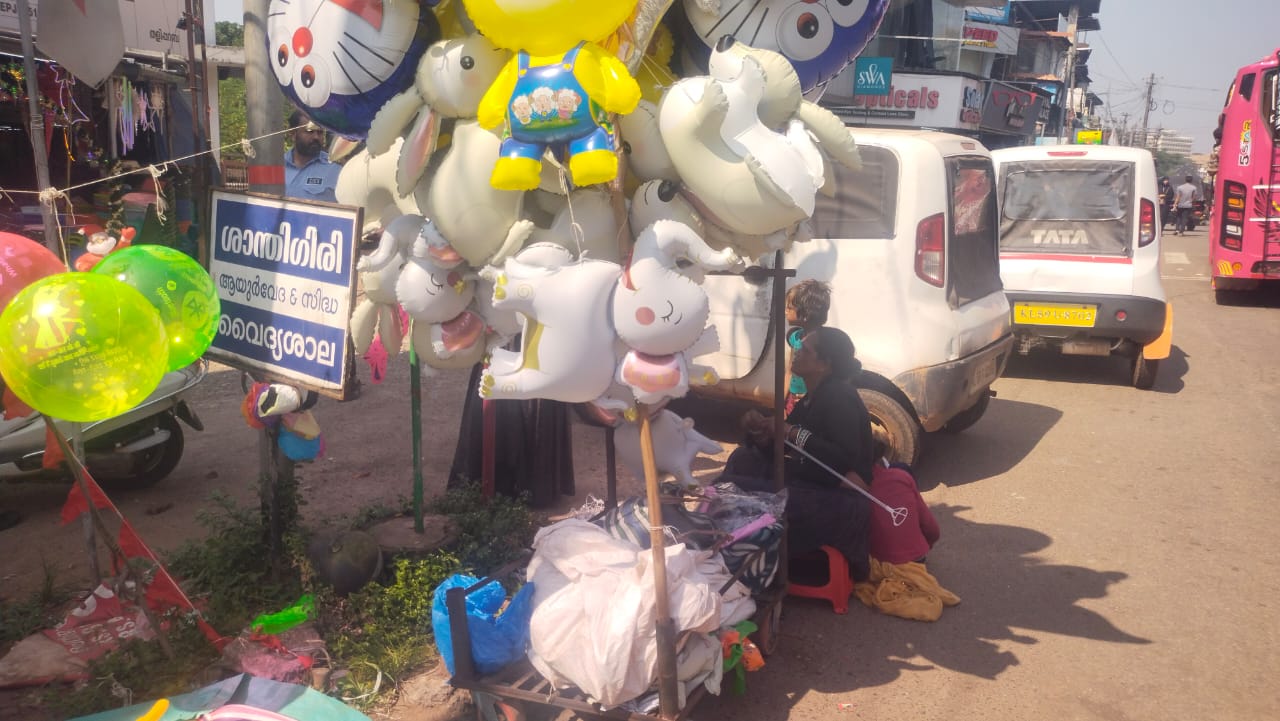 തളിപ്പറമ്പ്: തളിപ്പറമ്പ് നഗരത്തിന്റെ ഏത് ഭാഗത്ത് തിരിഞ്ഞാലും ഇപ്പോള്‍ പ്ലാസ്റ്റിക്ക് ബോളുകളും കളിപ്പാട്ടങ്ങളും വില്‍ക്കുന്നവരാണ്.