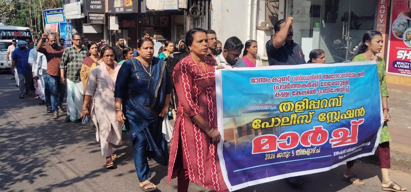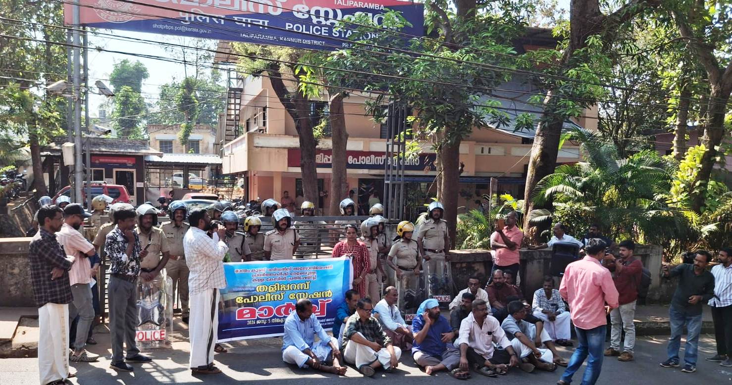 തളിപ്പറമ്പ്: പോലീസ് ദ്രോഹിക്കുന്നതായി ആരോപിച്ച് സി.പി.ഐ ജില്ലാ കൗണ്സില് അംഗം കോമത്ത് മുരളീധരന് രക്ഷാധികാരിയായ മാന്തംകുണ്ട് റസിഡന്സ് അസോസിയേഷന് തളിപ്പറമ്പ് പോലീസ് സ്റ്റേഷനിലേക്ക് പ്രതിഷേധമാര്ച്ച് നടത്തി.