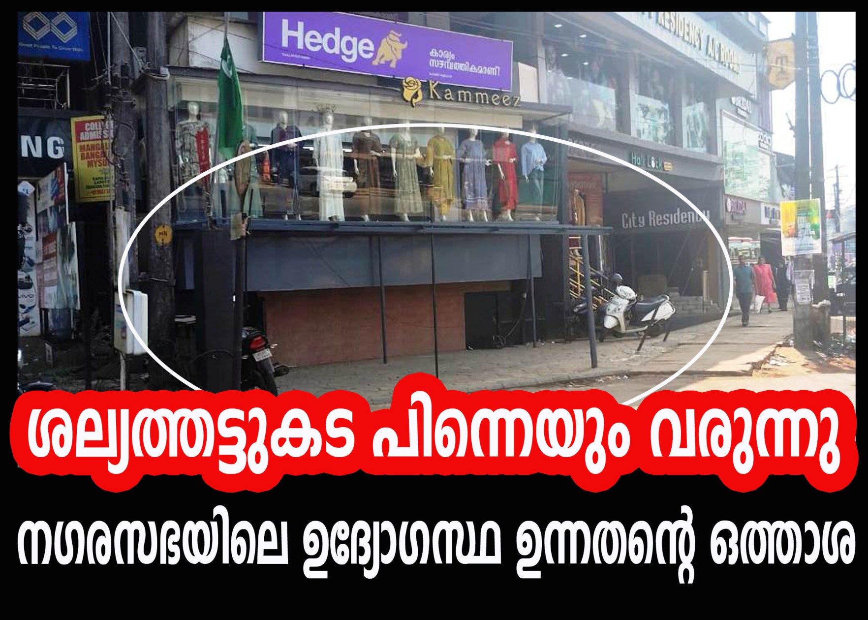 ഇപ്പോള് നഗരസഭയിലെ ഒരു ഉദ്യോഗസ്ഥ ഉന്നതനെ കാണേണ്ടതുപോലെ കണ്ടാണ് പുതുതായി തട്ടുകട ഇരുമ്പ് ചട്ടക്കൂട്ടില് തന്നെ പണിയുന്നത്.
