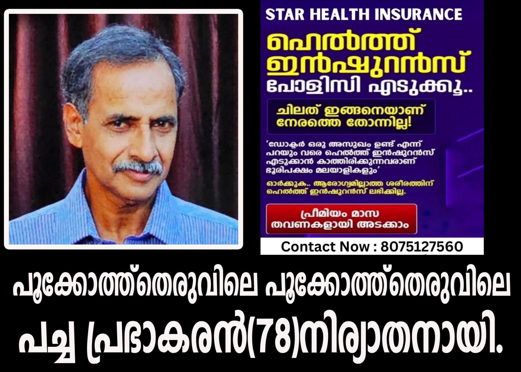 സംസ്ക്കാരം വൈകുന്നേരം 4 മണിക്ക് പുക്കോത്ത്തെരുവിലെ സമുദായ ശ്മശാനത്തില്.