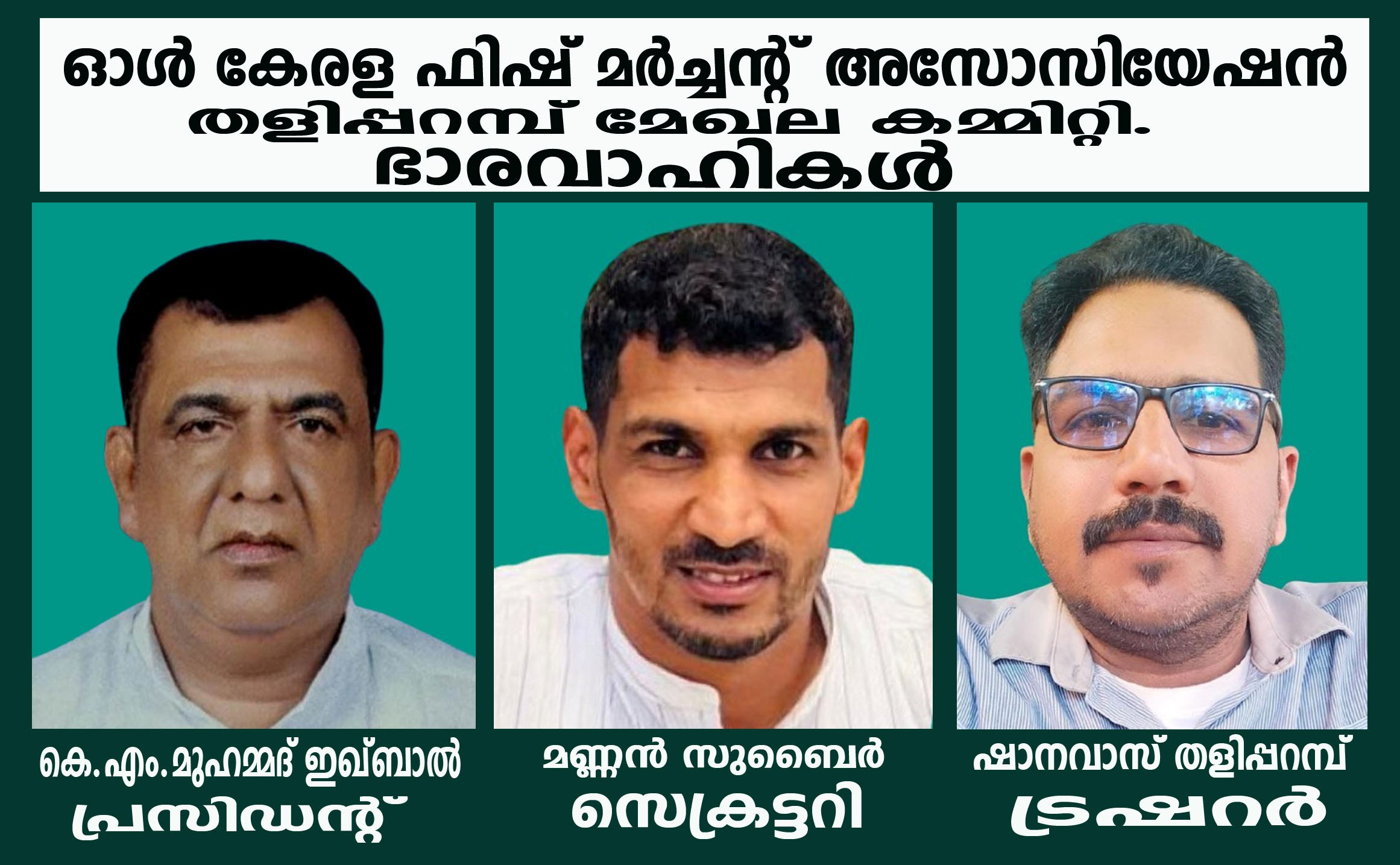ഓള് കേരള ഫിഷ് മര്ച്ചന്റ് അസോസിയേഷന് തളിപ്പറമ്പ് മേഖലാ കമ്മിറ്റിക്ക് 2026-2029 വര്ഷത്തേക്ക് പുതിയ ഭരണ നേതൃത്വവും നിലവില്വന്നു.