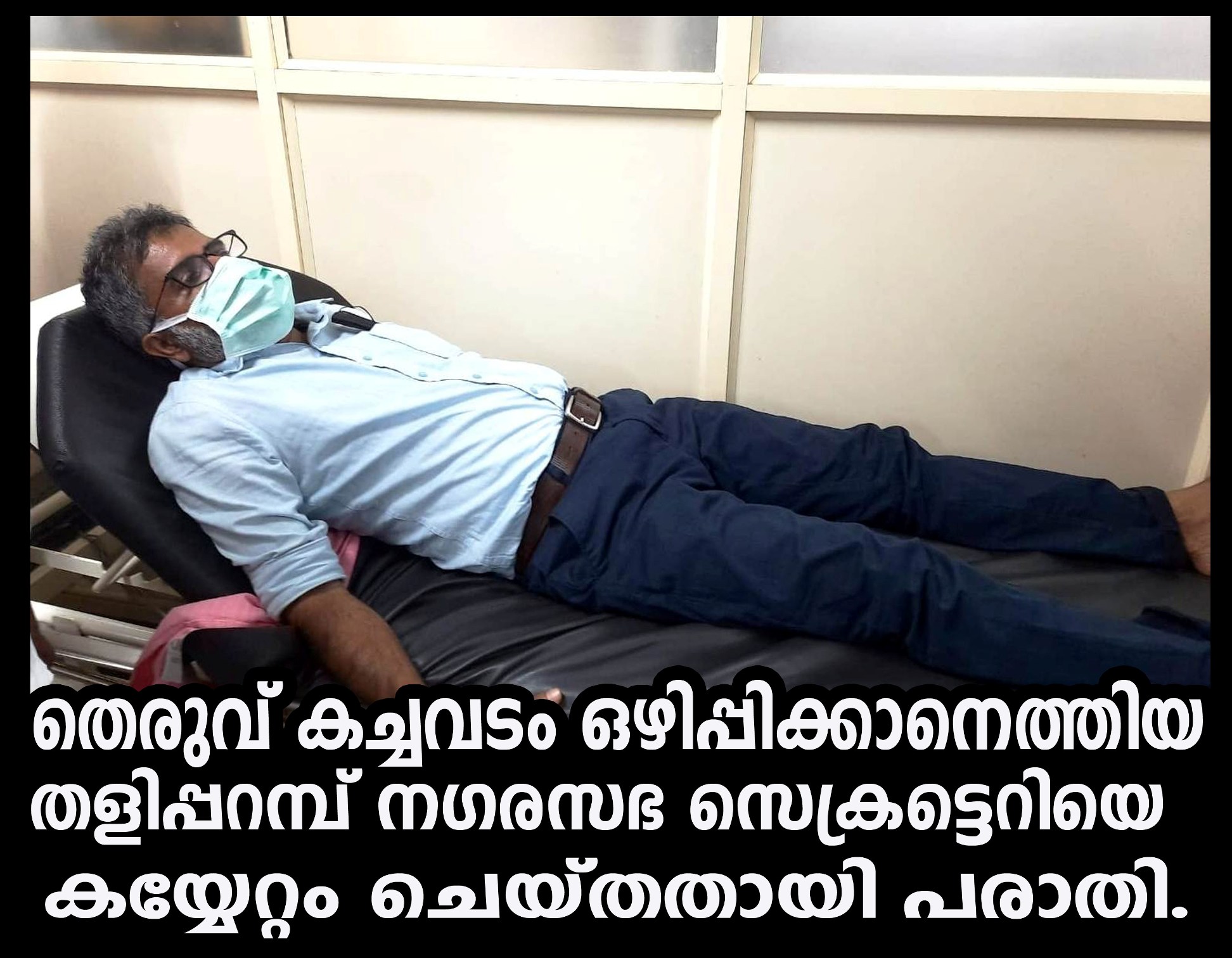 പരിക്കേറ്റ സെക്രട്ടെറിക്ക് തളിപ്പറമ്പ് ഗവ.താലൂക്ക് ആശുപത്രിയില്‍ ചികില്‍സ നല്‍കി. സംഭവത്തില്‍ നഗരസഭ ആരോഗ്യസ്ഥിരം സമിതി ചെയര്‍മാന്‍ പുല്ലായിക്കൊടി ച്ന്ദ്രന്‍, ബി.ജെ.പി കക്ഷിനേതാവ് അശോക് കുമാര്‍ അഞ്ചാമര എന്നിവര്‍ സംഭവത്തില്‍ പ്രതിഷേധിച്ചു.