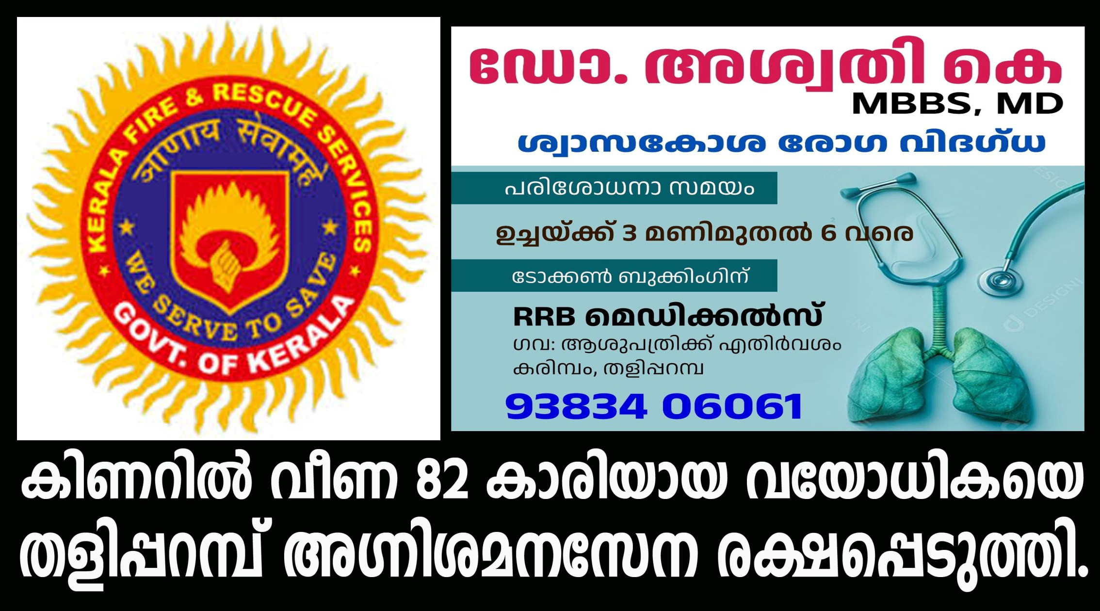 തളിപ്പറമ്പ്: കിണറില് വീണ 82 കാരിയായ വയോധികയെ തളിപ്പറമ്പ് അഗ്നിശമനസേന രക്ഷപ്പെടുത്തി.