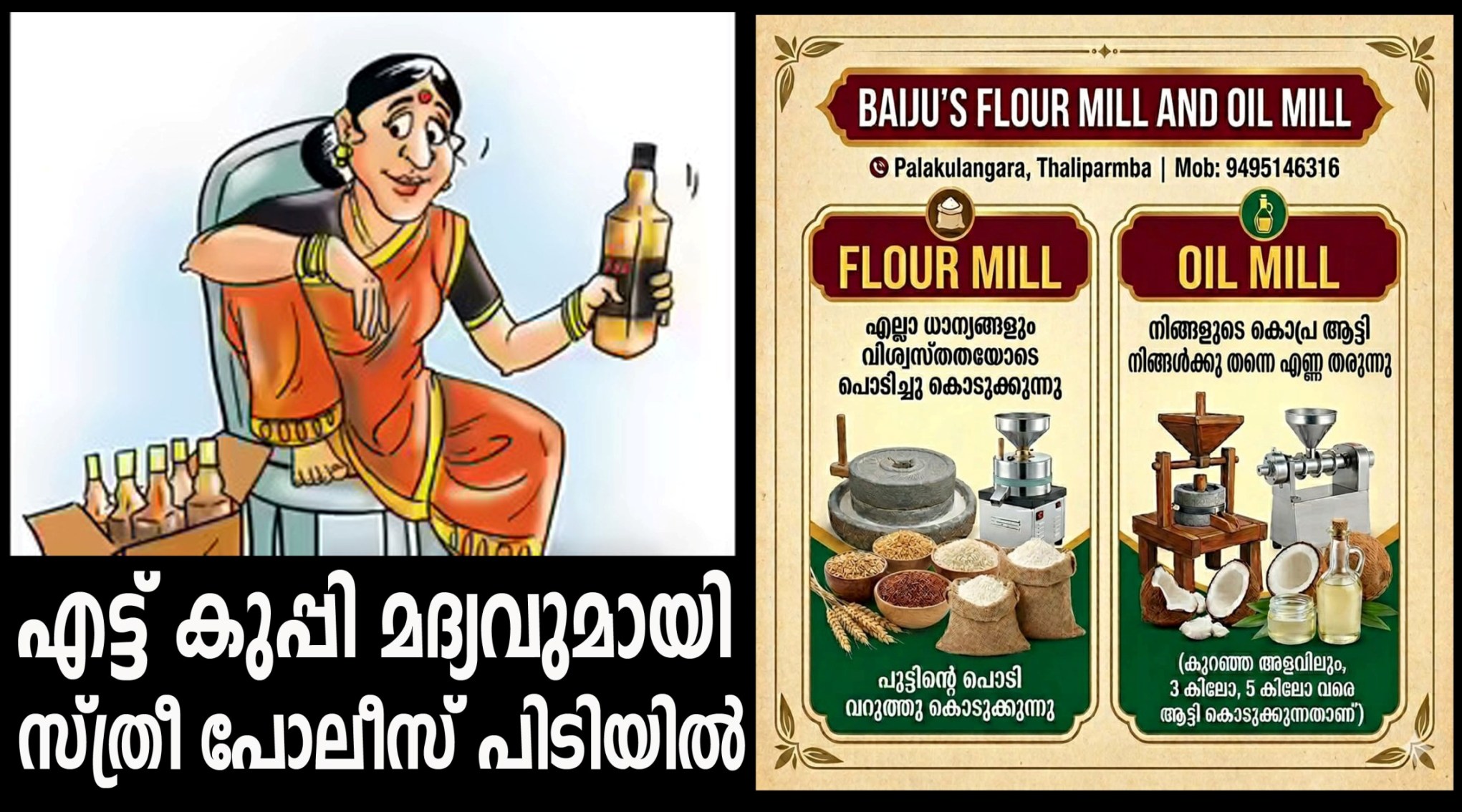 ഇവരില് നിന്ന് 500 മില്ലി ലിറ്റര് ഗോല്ക്കൊണ്ട എന്ന ബ്രാണ്ടിയുടെ 8 കുപ്പി പിടിച്ചെടുത്തു.