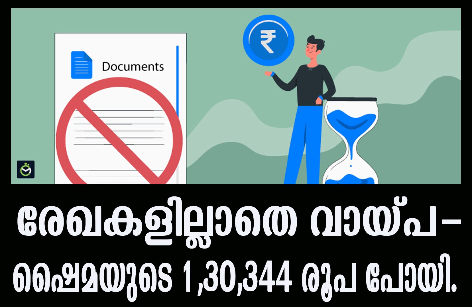 രേഖകളില്ലാതെ വായ്പ-ഷൈമയുടെ 1,30,344 രൂപ പോയി.