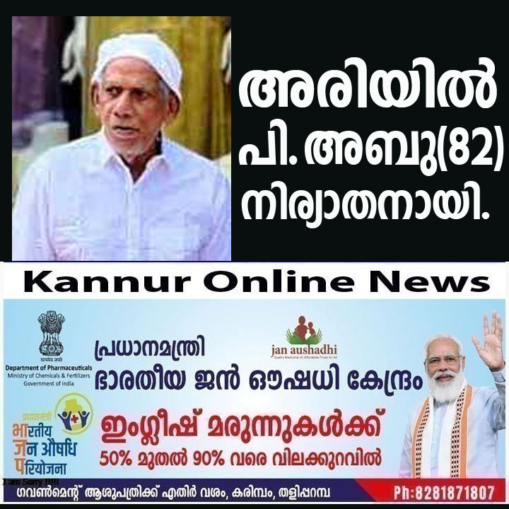 അരിയില് ഇസ്ലാമിക് സെന്ററിന് സമീപത്തെ പി.അബു(82)നിര്യാതനായി.