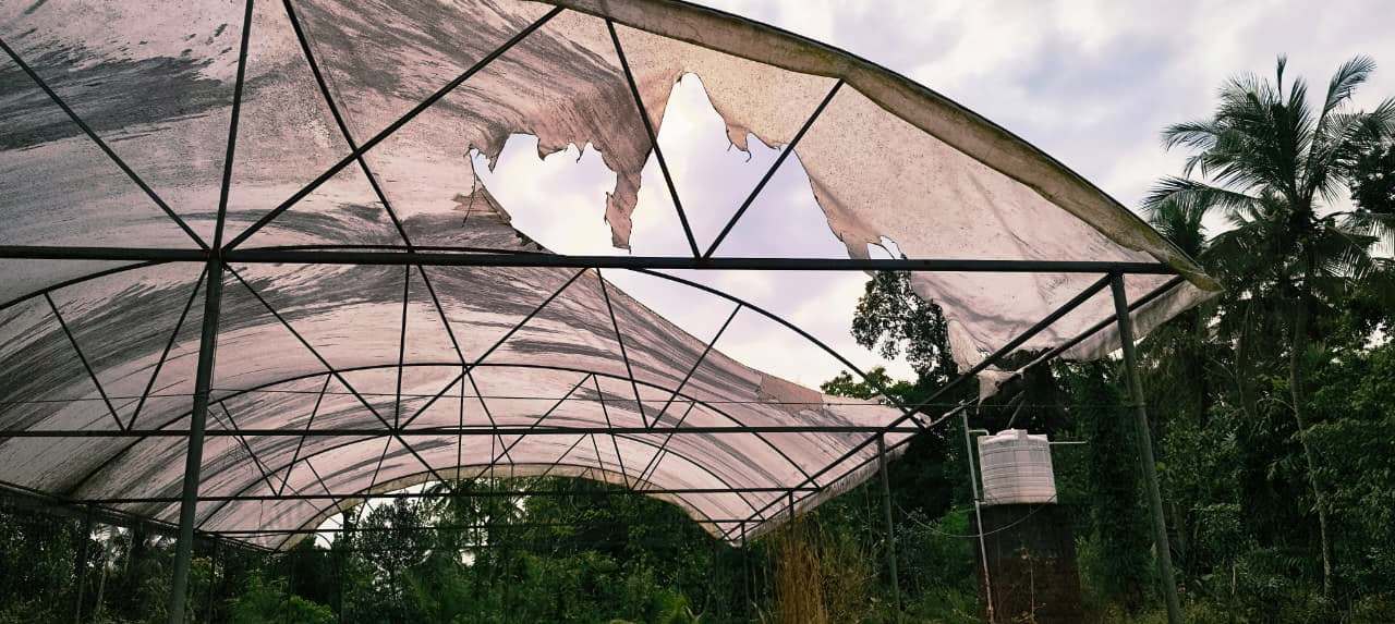 ഇന്നലെ രാത്രി 10 ന് മഴമറ തീവെച്ച് നശിപ്പിച്ച സാമൂഹ്യ വിരുദ്ധര് സ്ഥലത്തിന്റെ മതിലും തകര്ത്തു.