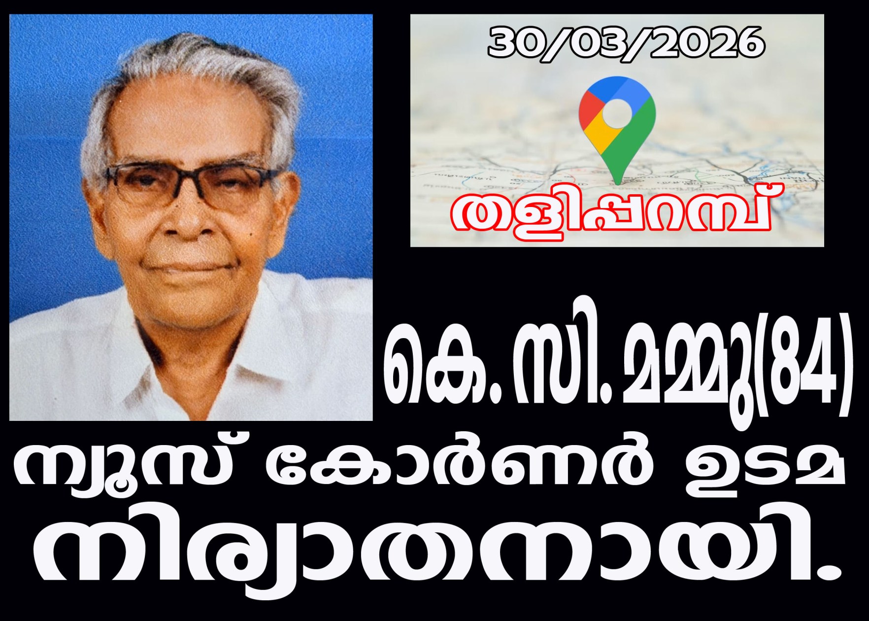 തളിപ്പറമ്പ്; ന്യൂസ് കോര്ണര് ഉടമയും തളിപ്പറമ്പിലെ പ്രമുഖ ന്യൂസ് ഏജന്റുമായ കെ.സി മമ്മു(84) നിര്യാതനായി.