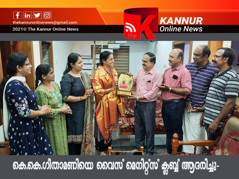 കെ.കെ.ഗീതാമണിയെ വൈസ് മെനിറ്റ്സ് ക്ലബ്ബ് ആദരിച്ചു-