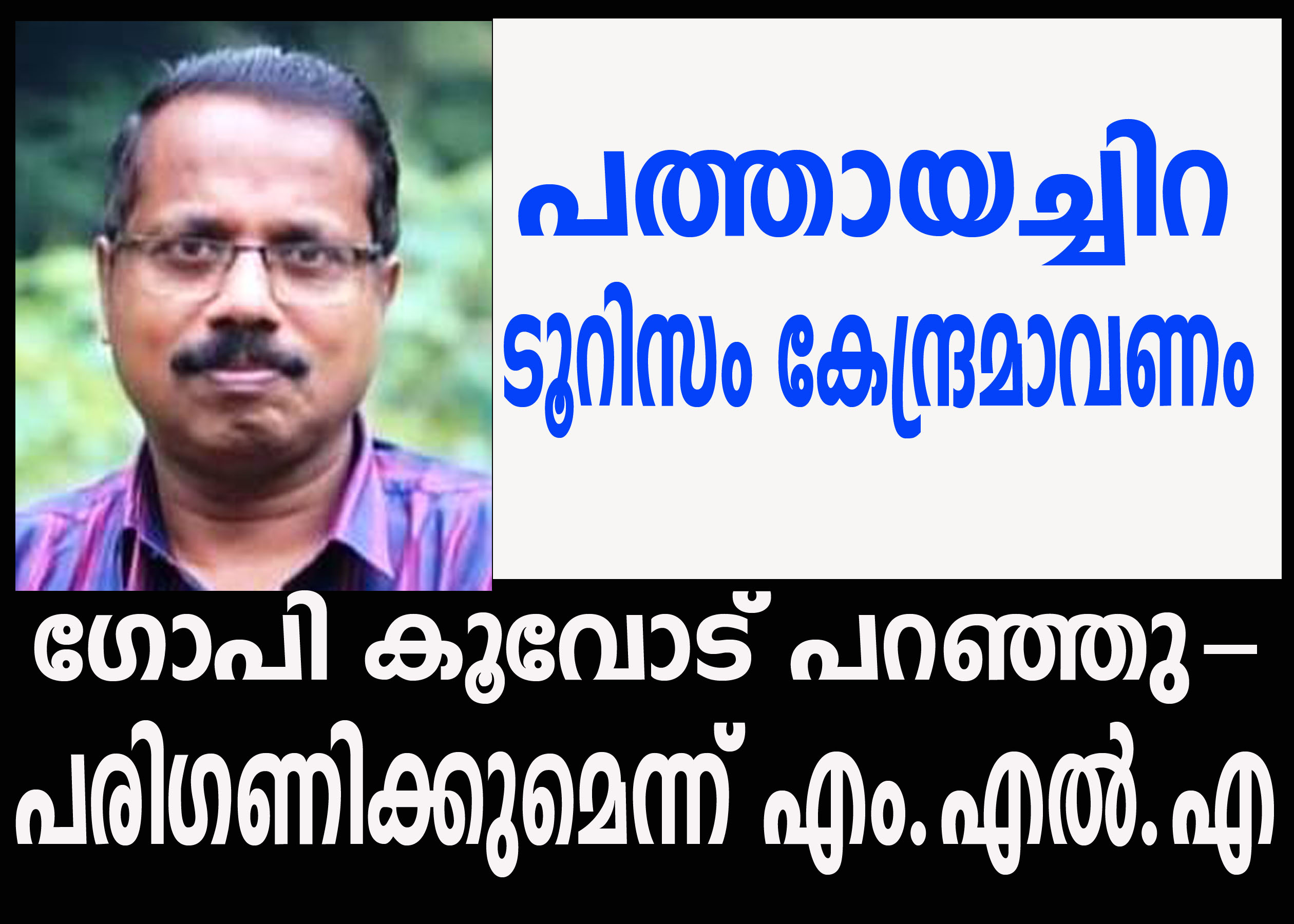 ഇന്ത്യയിലെ പ്രധാന ടൂറിസ്റ്റ് കേന്ദ്രമായി കണ്ണൂര് വളരുന്ന സാഹചര്യത്തില്, കൂവോടിനെയും ഈ വികസന യാത്രയുടെ ഭാഗമായി ഉയര്ത്തിക്കൊണ്ടുവരേണ്ടതിന്റെ ആവശ്യകതയും ഗോപി അവതരിപ്പിച്ചു.