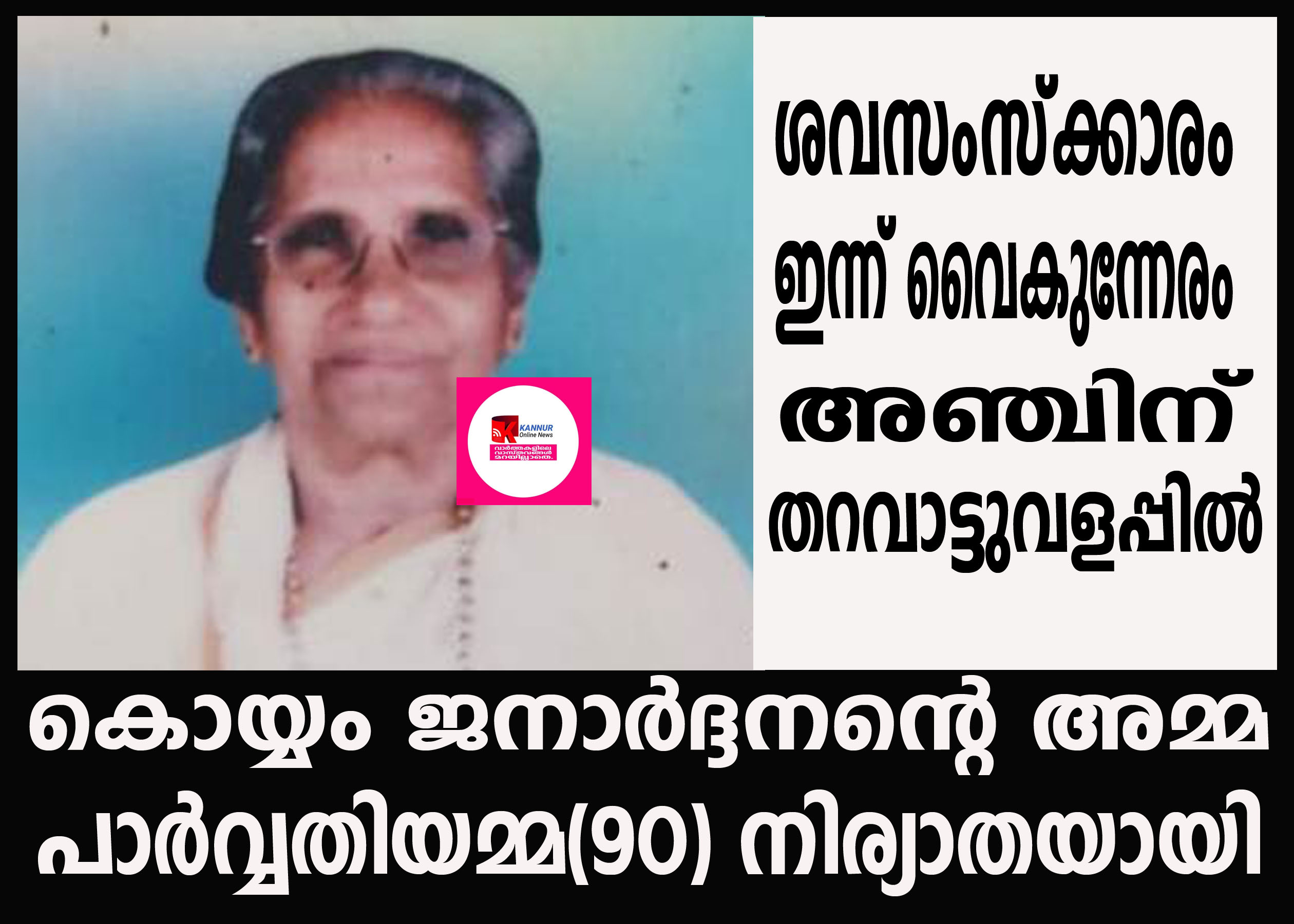 കൊയ്യം ജനാര്ദ്ദനന്റെ അമ്മ പാര്വ്വതിയമ്മ(90) നിര്യാതയായി