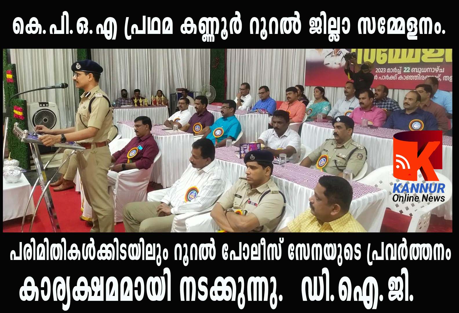 റൂറല് ജില്ലാ അഡീഷണല് എസ്.പി എ.ജെ.ബാബു, കെ.പി.ഒ.എ സംസ്ഥാന പ്രസിഡന്റ് ആര്.പ്രശാന്ത്, തളിപ്പറമ്പ് ഡി.വൈ.എസ്.പി എം.പി.വിനോദ്, സ്പെഷ്യല്ബ്രാഞ്ച് ഡി.വൈ.എസ്.പി കെ.വിനോദ്കുമാര്, പയ്യന്നൂര് ഡി.വൈ.എസ്.പി കെ.ഇ.പ്രേമചന്ദ്രന്, കെ.പി.ഒ.എ സംസ്ഥാന ജോ.സെക്രട്ടെറിമാരായ വി.ചന്ദ്രശേഖരന്,