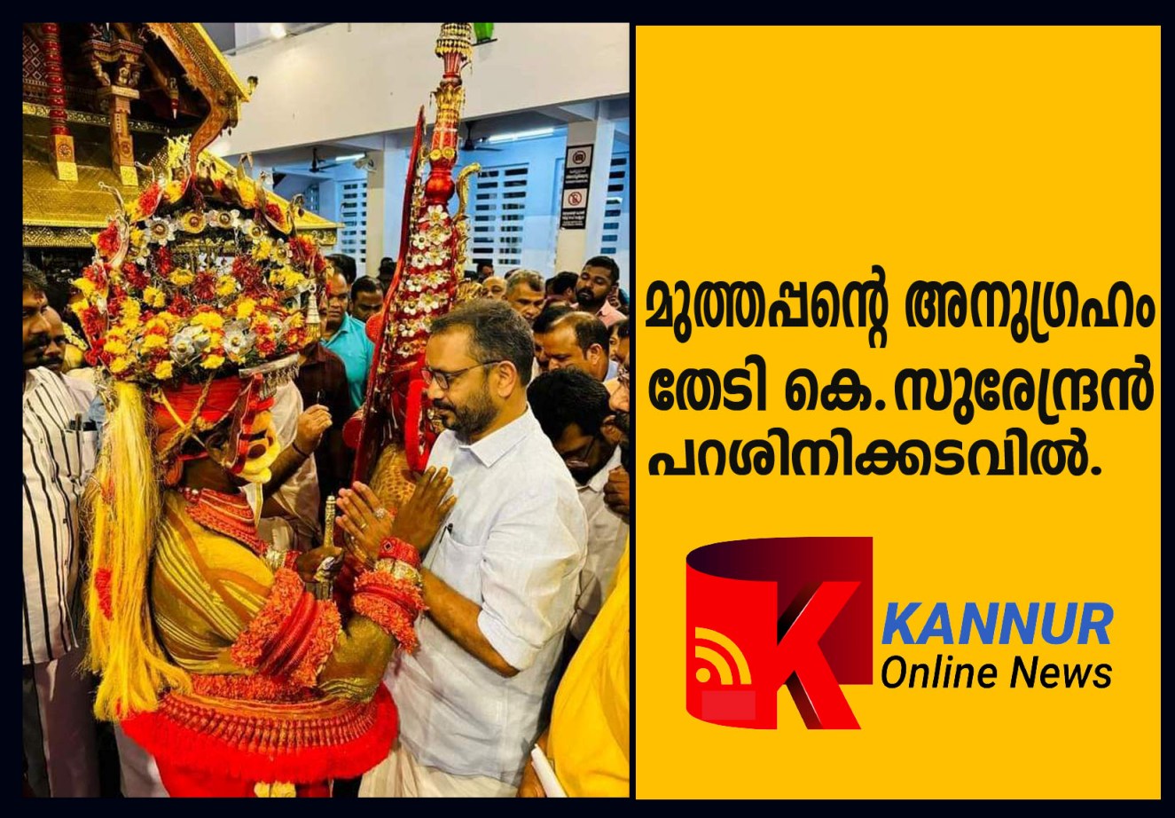 മുത്തപ്പന് തിരുവപ്പന, വെള്ളാട്ടം തെയ്യങ്ങളില് നിന്ന് അനുഗ്രഹം വാങ്ങിയശേഷമാണ് സുരേന്ദ്രന് മടങ്ങിയത്.