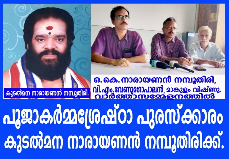പൂജാകര്‍മ്മശ്രേഷ്ഠാ പുരസ്‌ക്കാരം കുടല്‍മന നാരായണന്‍ നമ്പൂതിരിക്ക്.